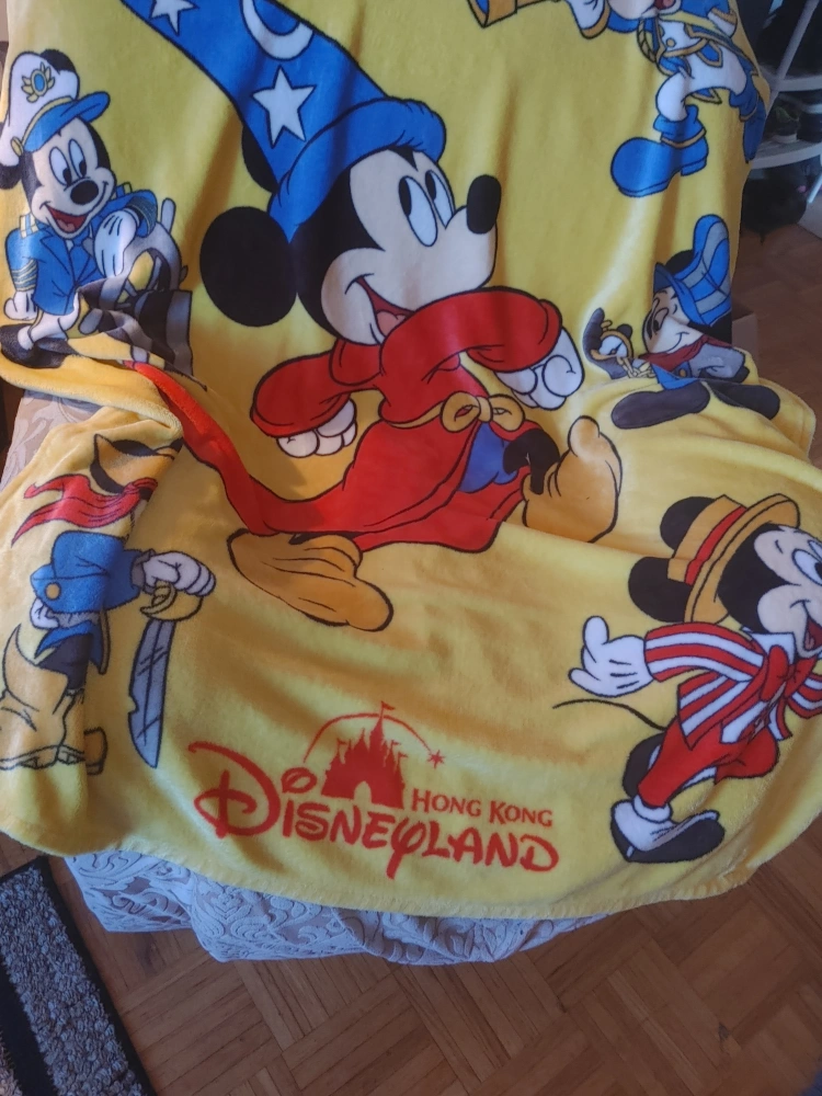 404Selling a cozy Disney Hong Kong Disneyland blanket featuring Mickey Mouse and friends! It's a bright yellow colour and would be perfect for any Disney fan