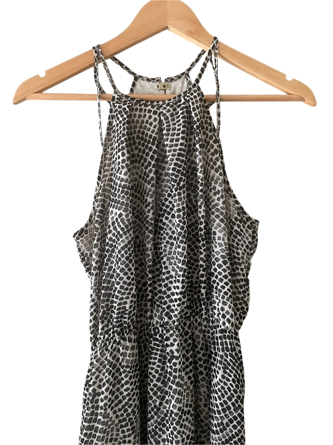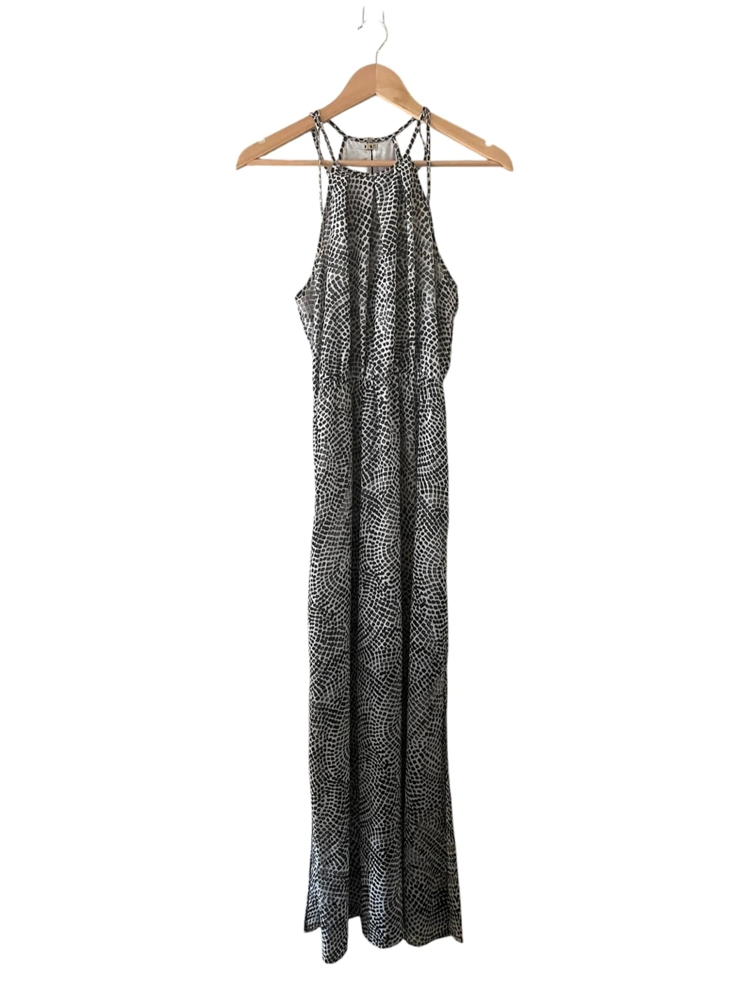 Selling this gorgeous H&M halter maxi dress. It's a size US 4. The dress has a black, white and grey mosaic print pattern, and two side slits. Perfect for summer!