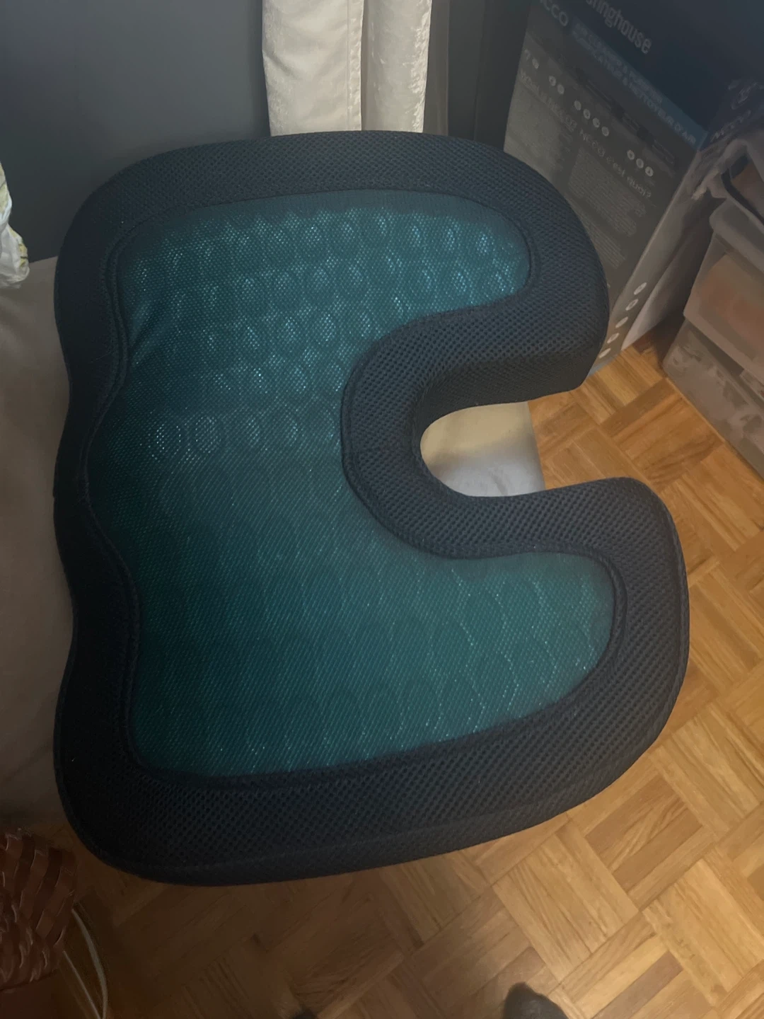 Selling a gently used ergonomic seat cushion. It's designed for optimal comfort and support, perfect for long hours sitting at a desk or in the car. It has a unique shape and design to promote good posture and relieve pressure. It's in great condition!