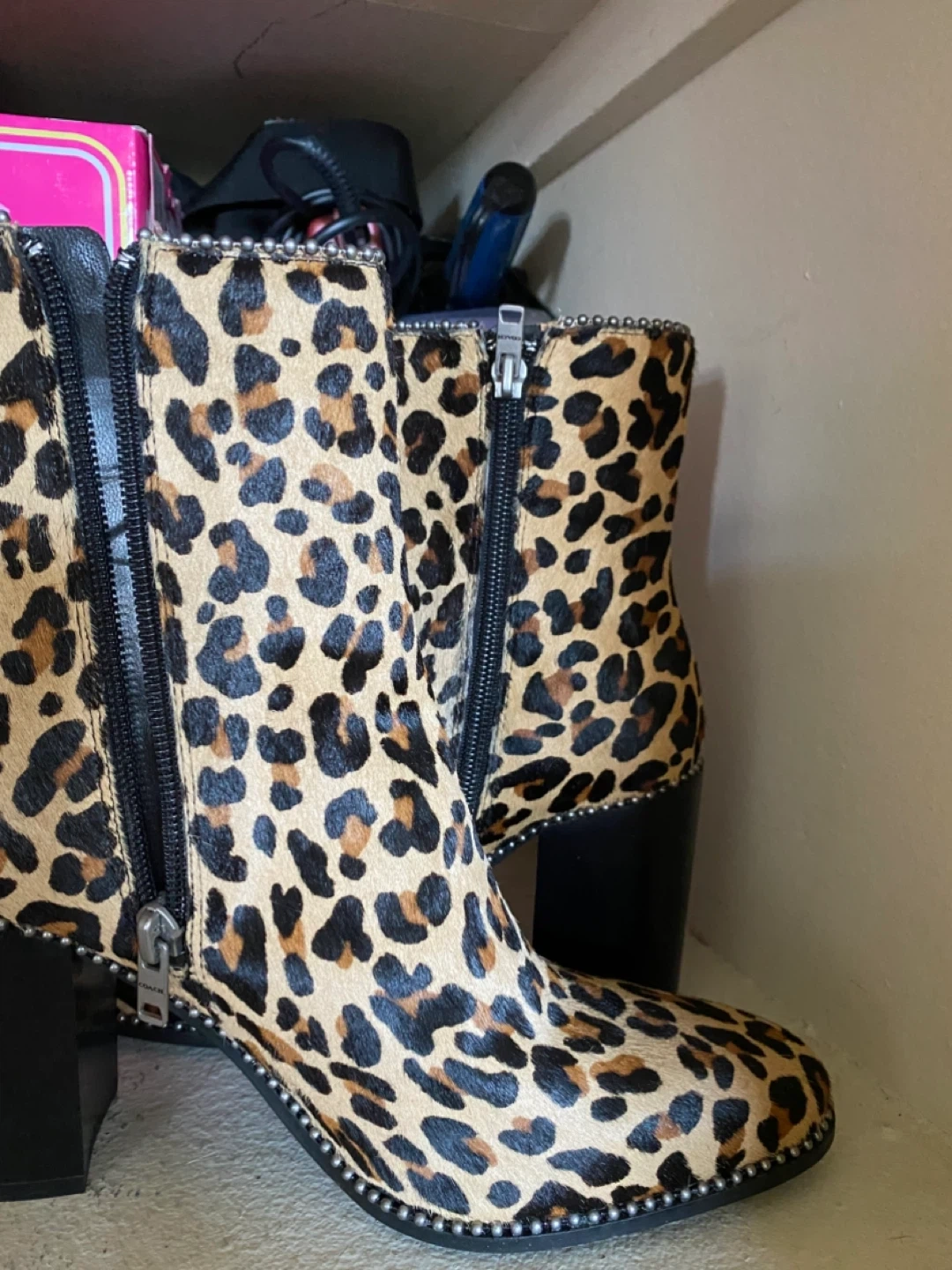 Buy & SellCoach Leopard Print Ankle Boots - Size 8Coach Leopard Print Ankle Boots - Size 8$50These stylish Coach ankle boots feature a bold leopard print and a black heel. Size 8.BrandCoach1 chats·0 favorites·17 viewsSELLERverifiedDebbieGuildwood1023 reviewsWHERE TO MEETGuildwood