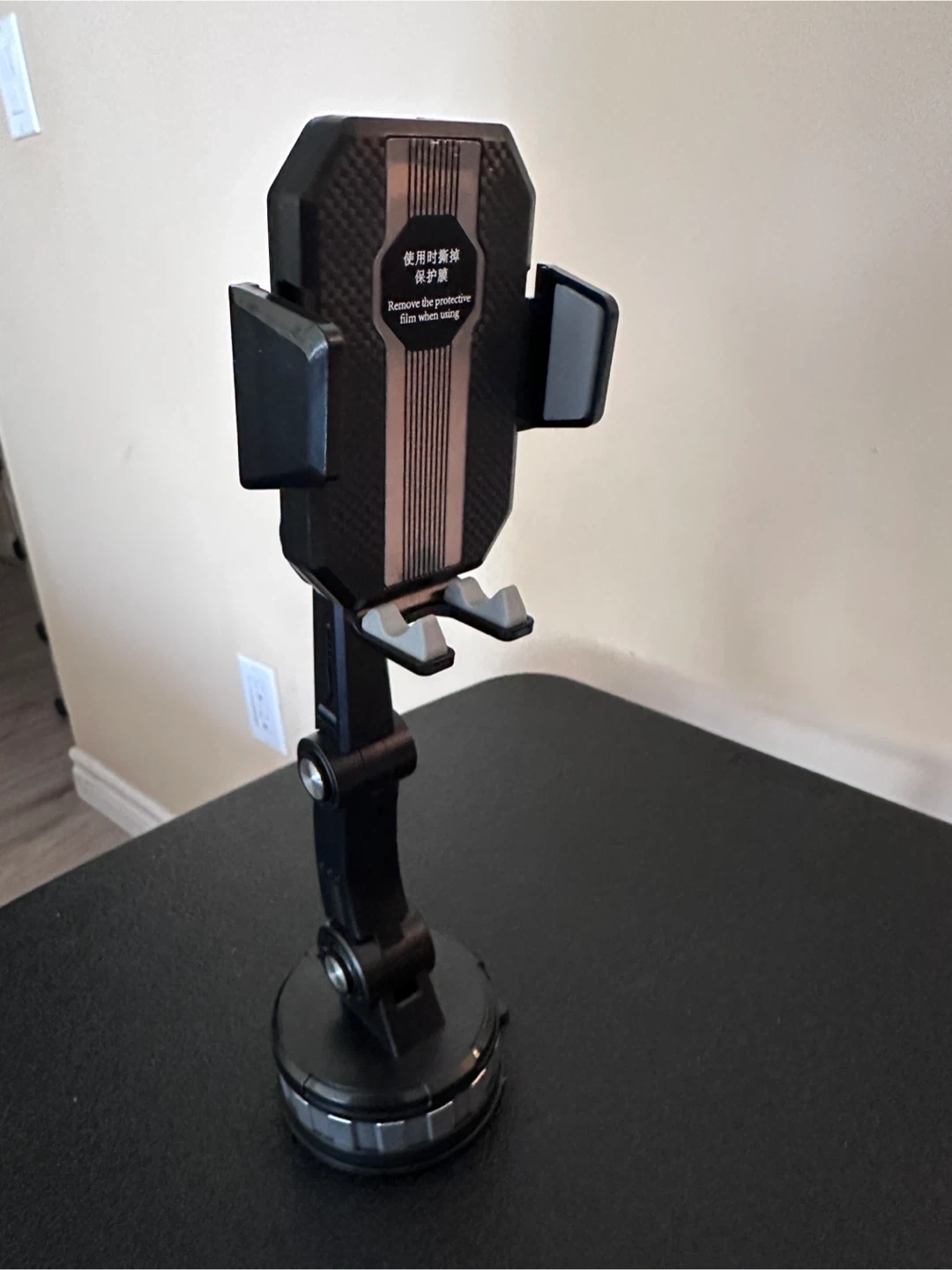224Selling a universal car phone mount. It's in great condition and ready to hold your phone securely while you drive. Features include a suction cup base and adjustable arm for optimal viewing. Remove the protective film when using