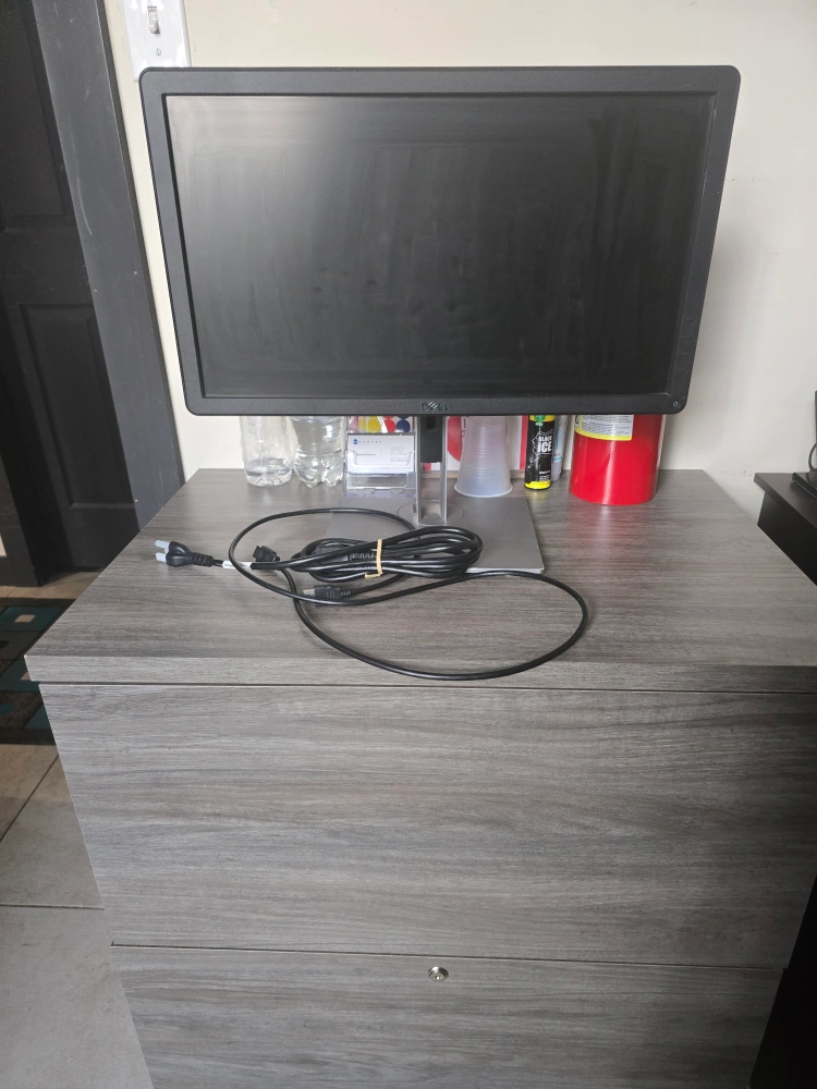 Selling a Dell monitor along with a grey filing cabinet. Perfect for a home office setup or for extra storage!