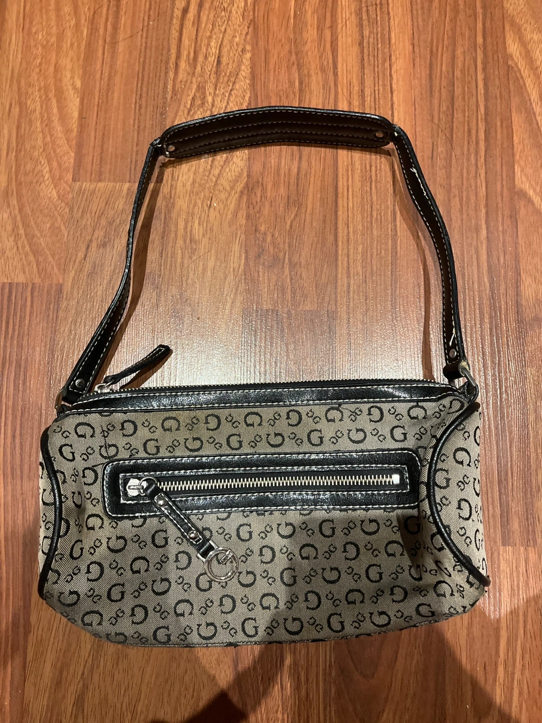 Selling vintage Guess shoulder bag with a fun G-print pattern! It's in good condition. The bag features a zipper closure and a stylish design. Meet up or pickup - message if interested Sold as is.
