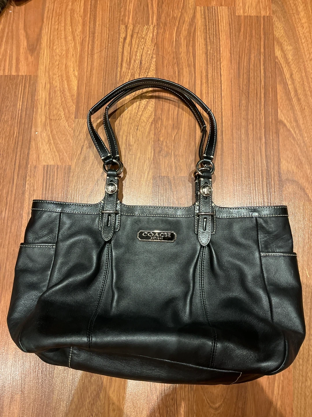 Selling a black leather handbag from Coach. It's in great shape and ready for a new home! Meet up or pickup - message if interested
