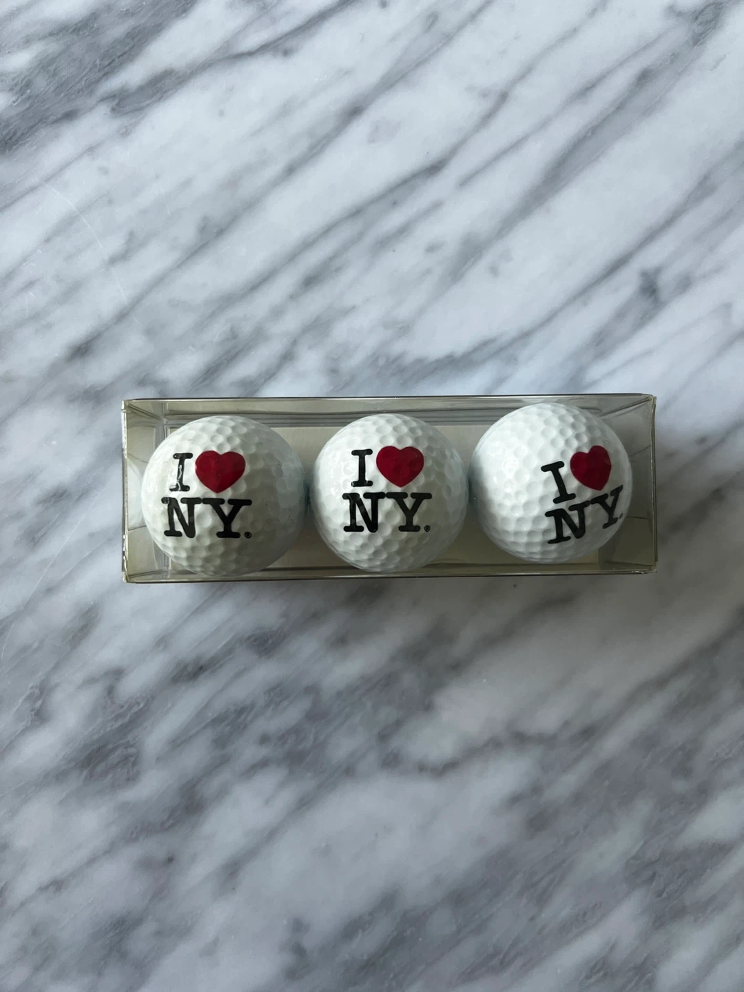 Selling a set of three golf balls that say "I (heart) NY"! They come in a clear plastic case Pick up by eglinton / mt pleasant