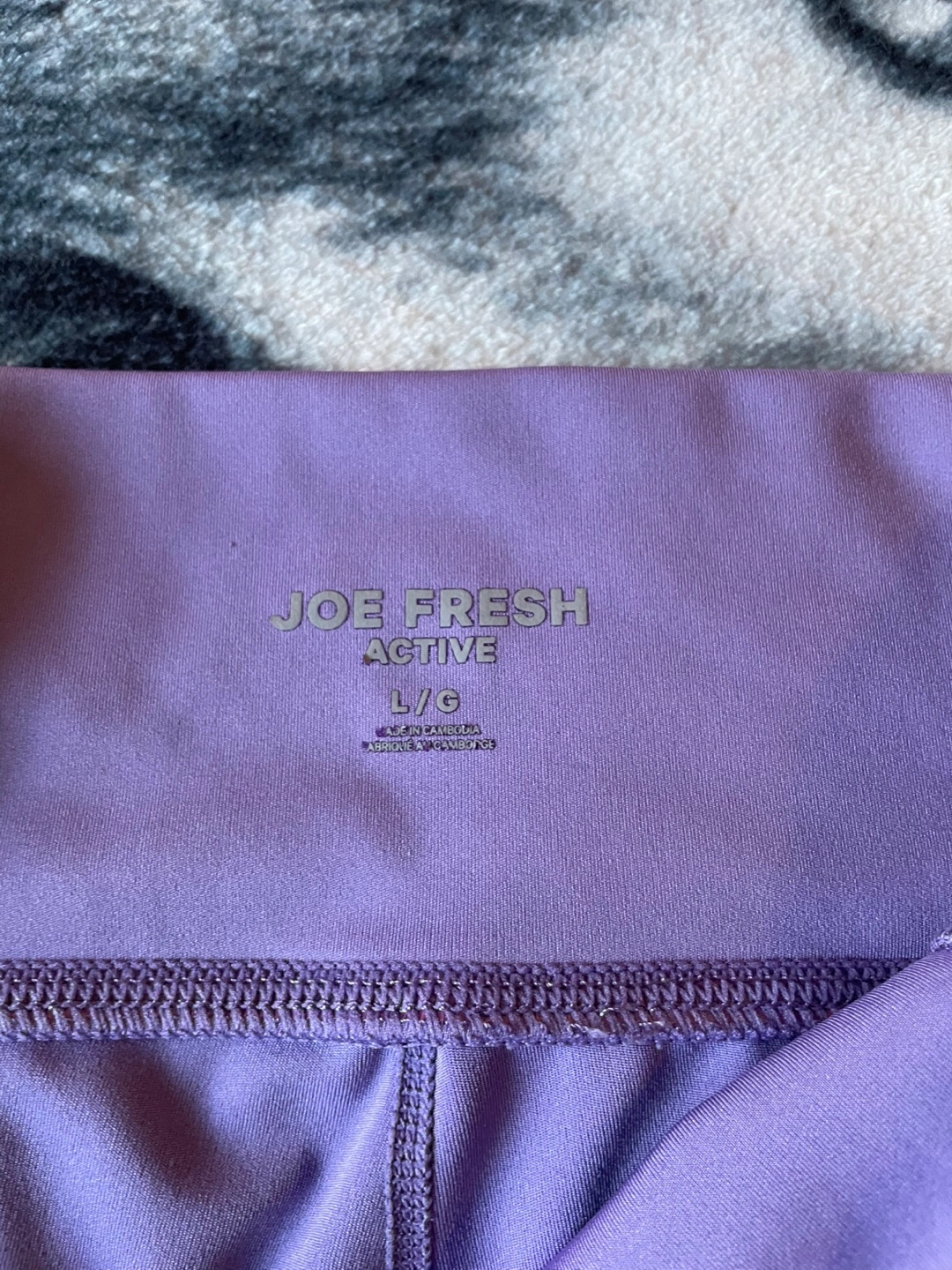 Selling a pair of Joe Fresh Active leggings in a lovely shade of purple! They're a size large and in great condition. Perfect for workouts or just lounging around!