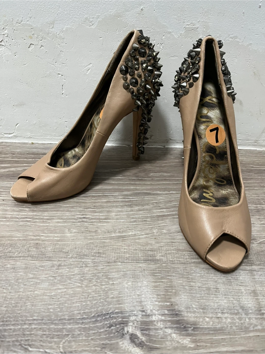 Sam Edelman heels in nude . Open toe and studded detailing on the back. Size 7.