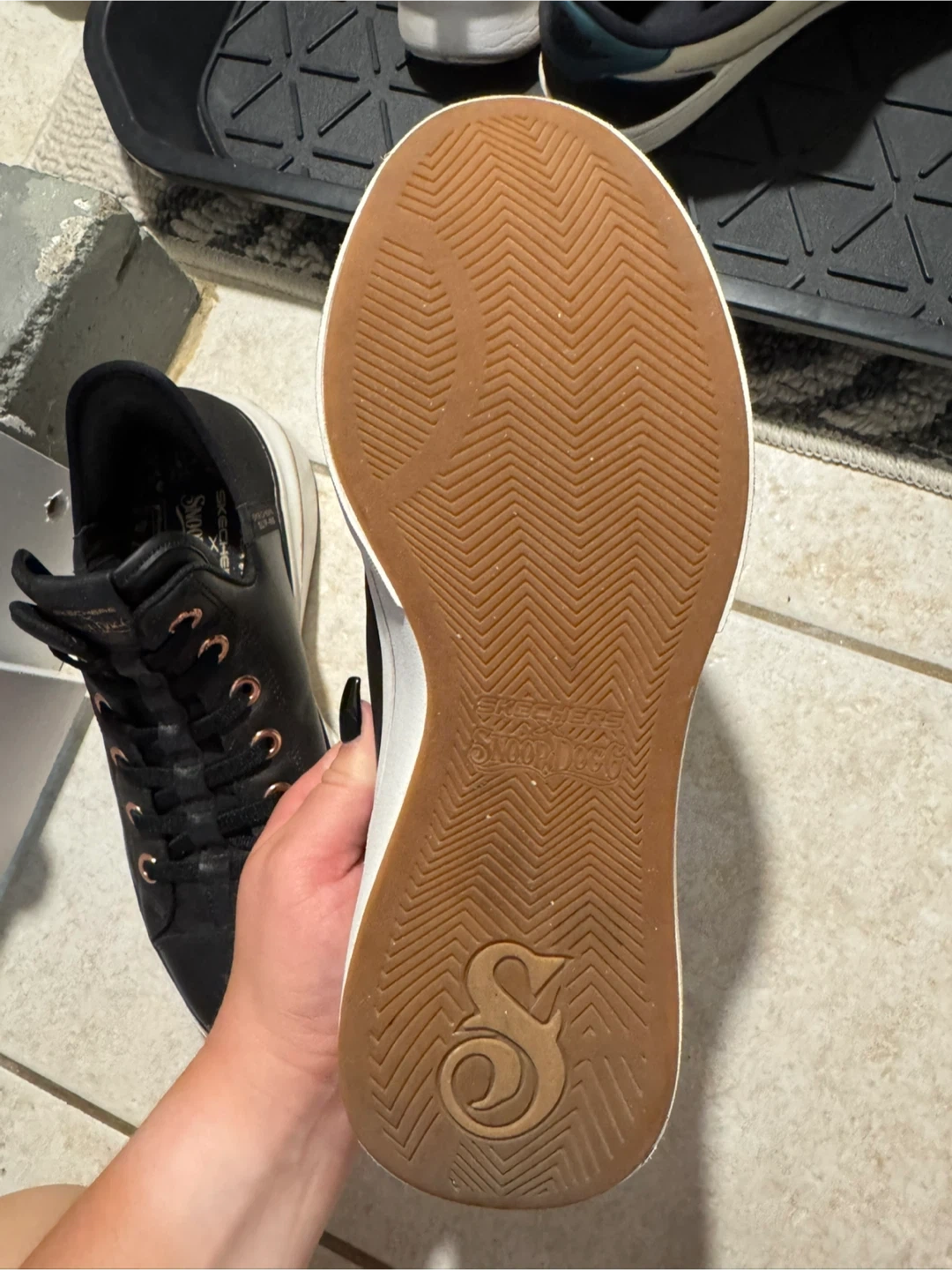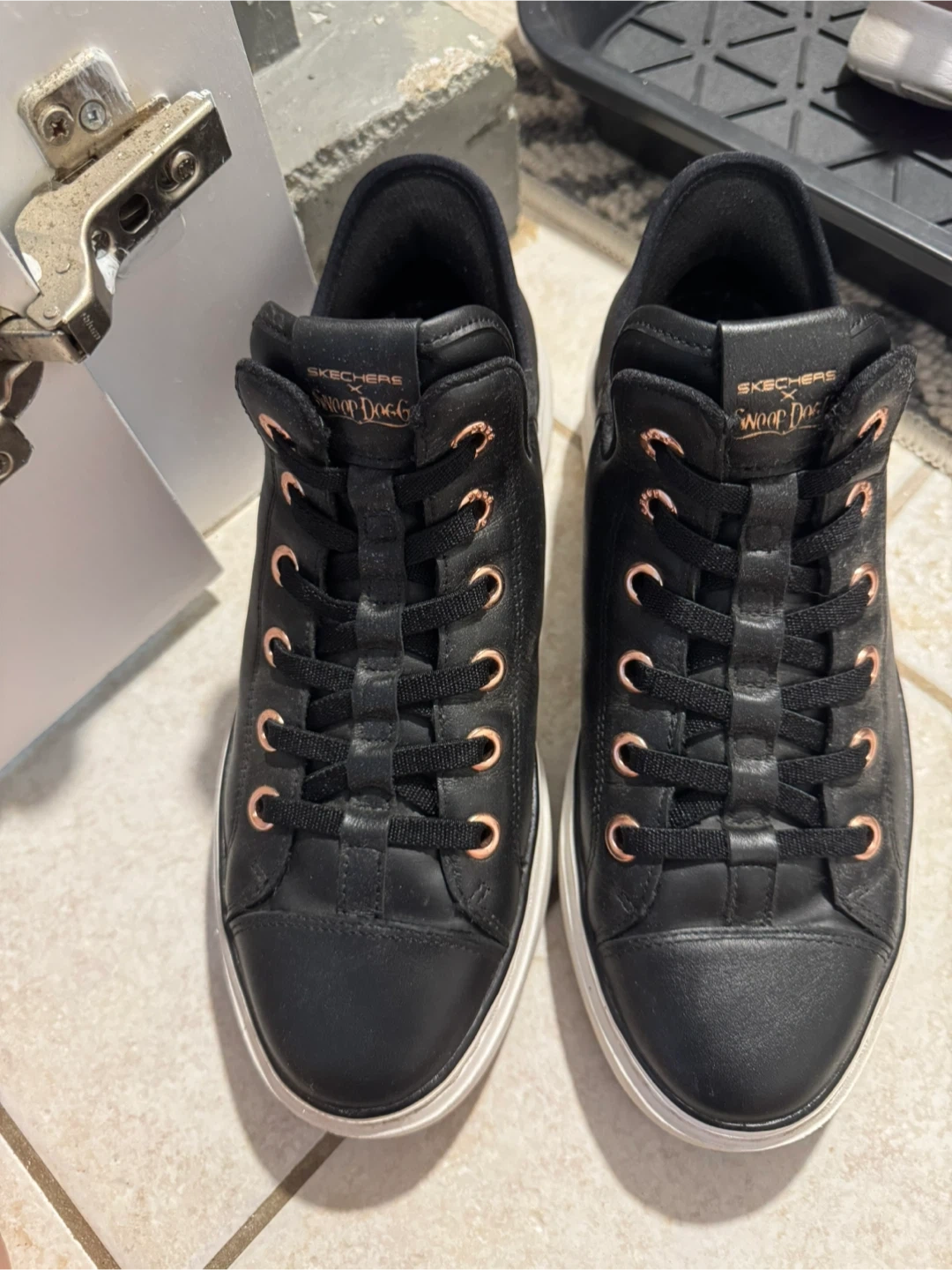 28Selling a pair of Skechers x Snoop Dogg sneakers! They are black with rose gold accents. Please message me with any questions!