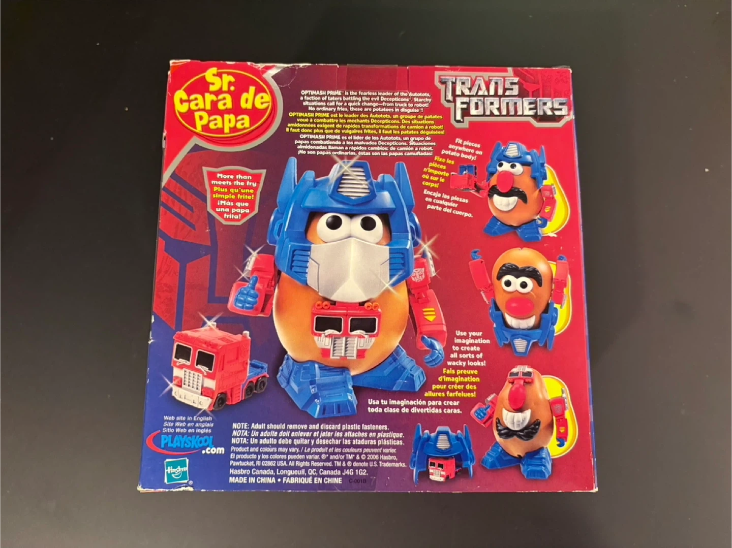 Selling a Mr. Potato Head Transformers Optimash Prime toy! This fun toy is suitable for ages 2 and up. It comes in the original box, ready for a new home! Roll Out!