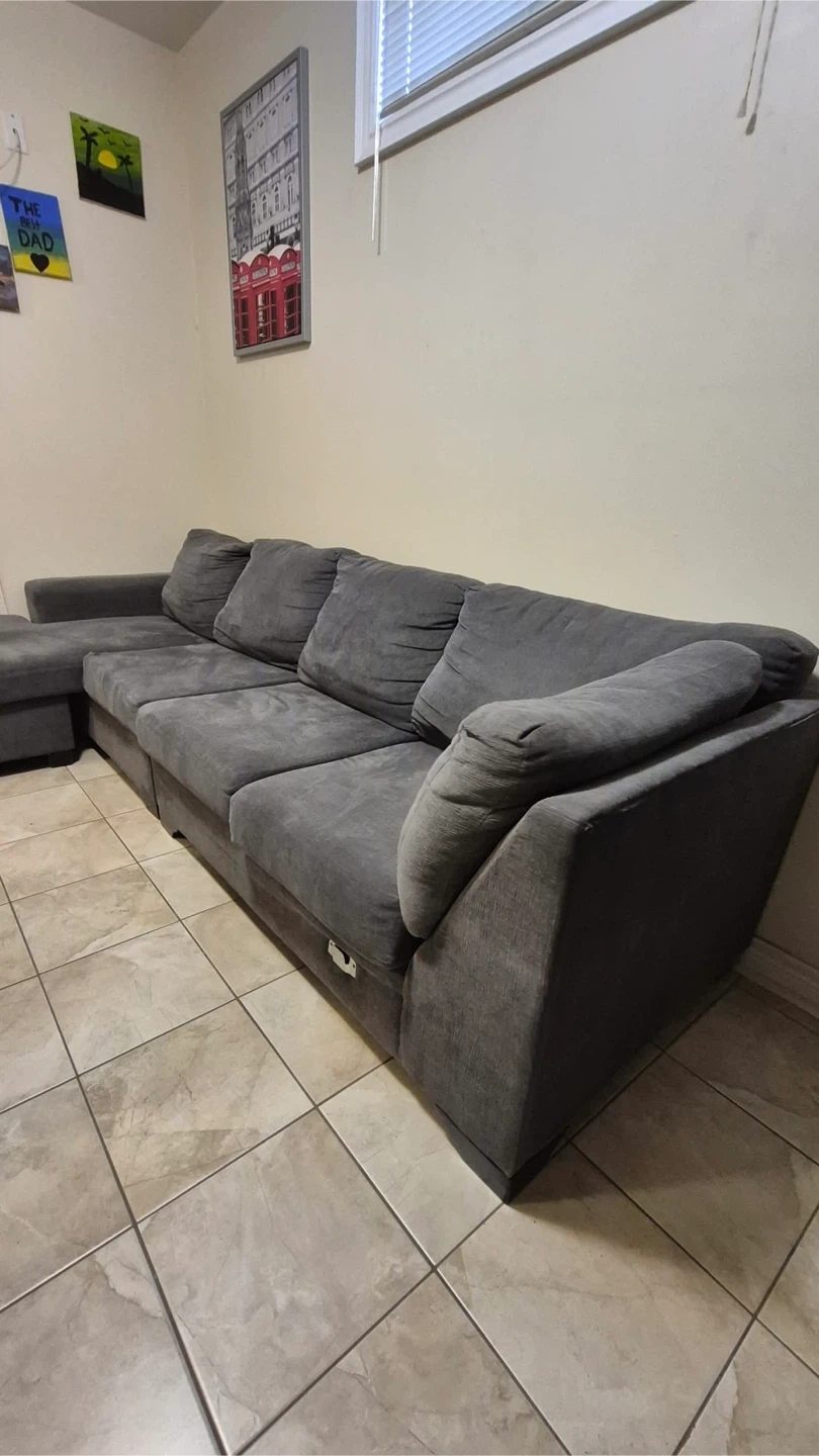 Buy & SellGrey Sectional Sofa with Chaise LoungeGrey Sectional Sofa with Chaise Lounge$180Selling a comfy grey sectional sofa with a chaise lounge. It's in good condition from a SFPF home.ConditionGoodWHERE TO MEETCheck LocationView MapSELLERMadexiJane Heights577 reviews3 chats·2 favorites·111 viewsSEND CHAT TO SELLERHi Madexi! I’m interested in your listing.Hi Madexi! I’m interested in your listing.Get the Karrot app to chatSign In to chat