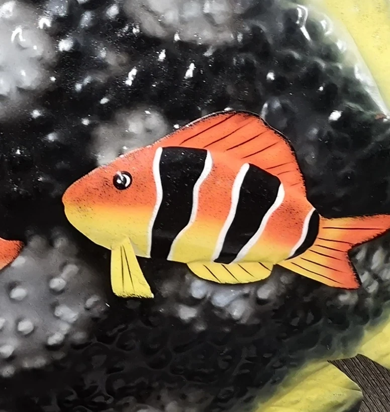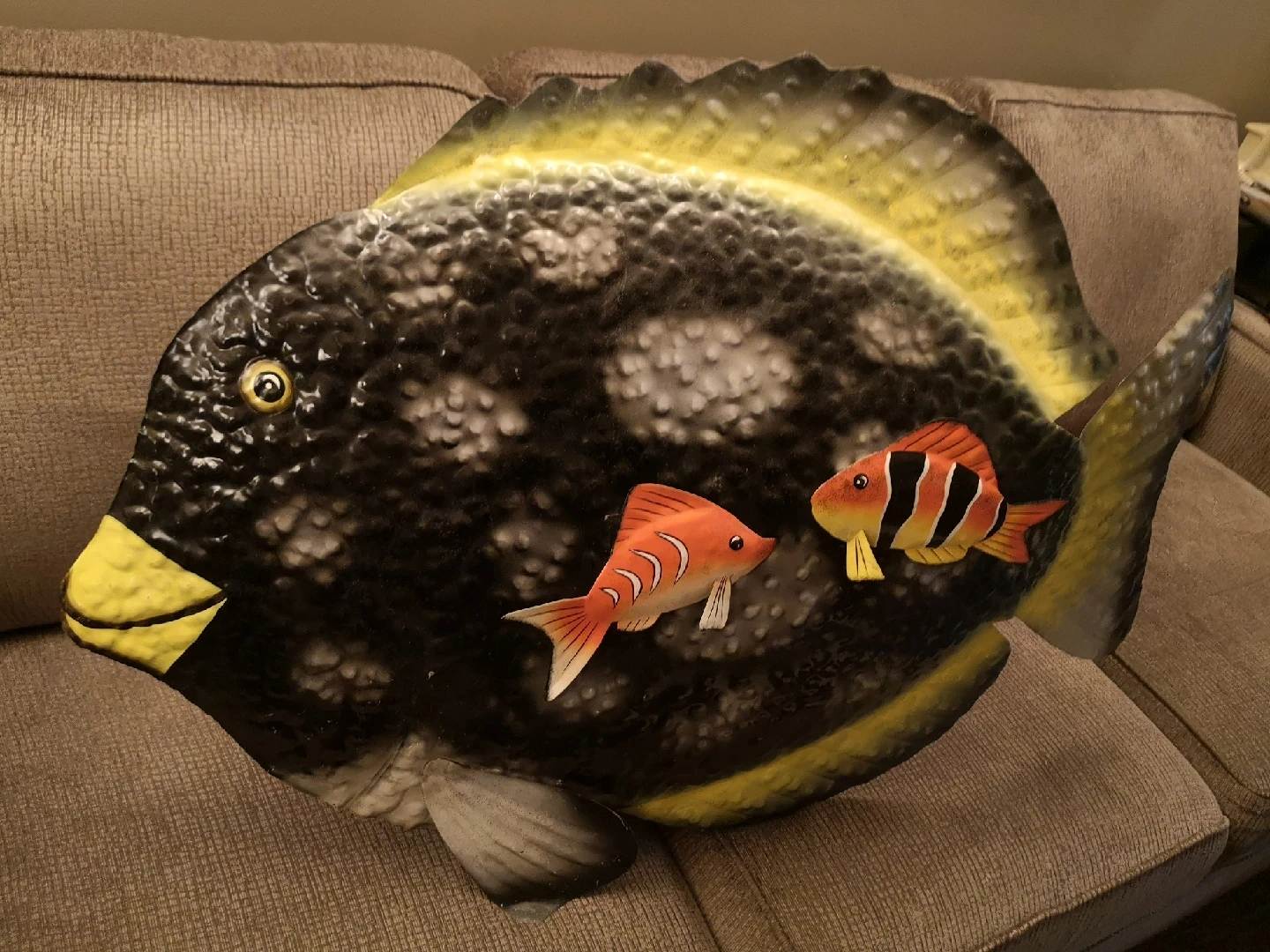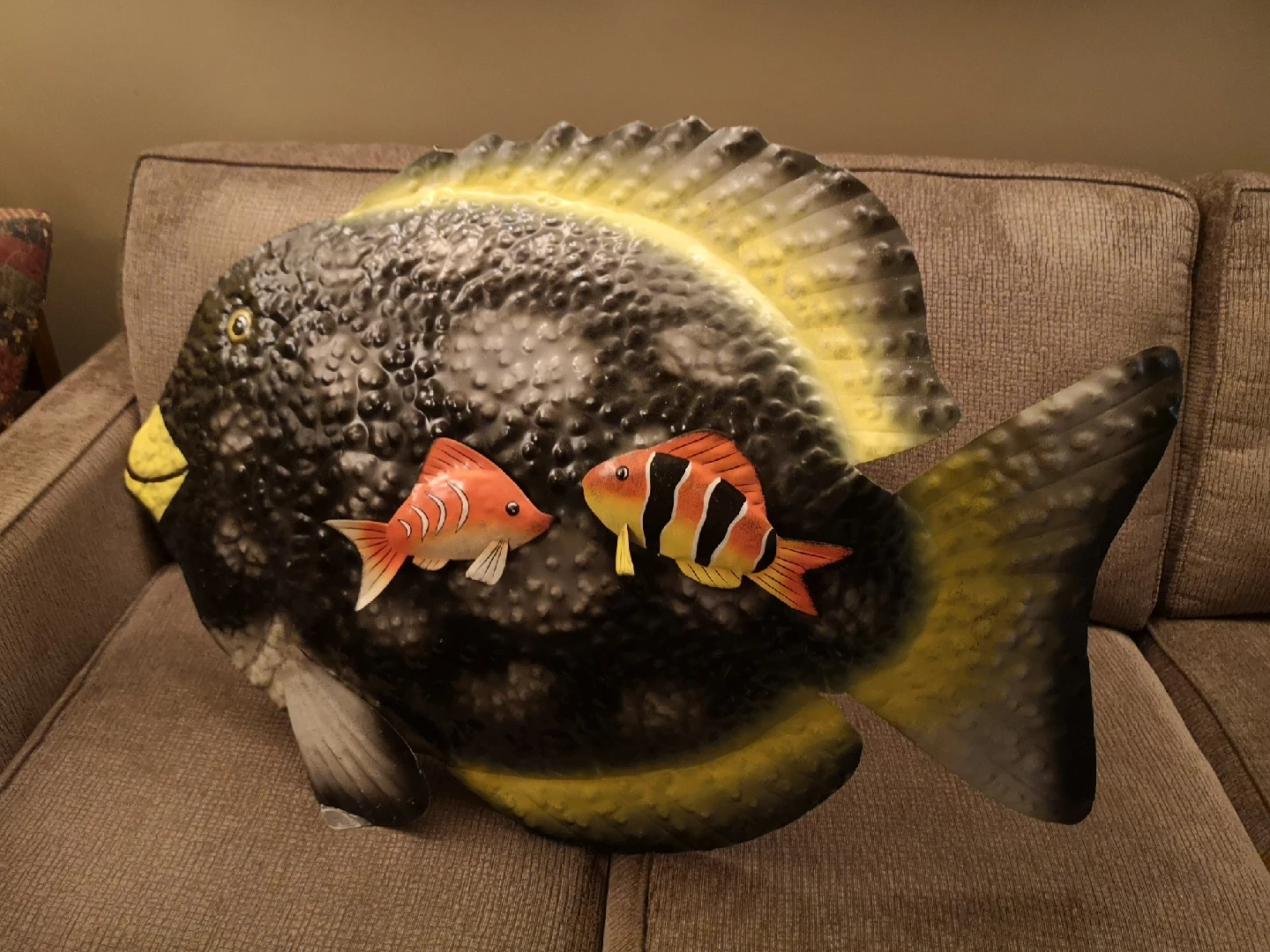 Stamped 3D metal fish wall art. - Large fish is a Yellowfin Tang. - Not 100% sure what the 2 small fish are... I wanna say a Clownfish + flame angelfish. - All metal, hand painted + airbrushed - Secures via 2 metal loops Pickup in Ranchlands in NW Calgary.