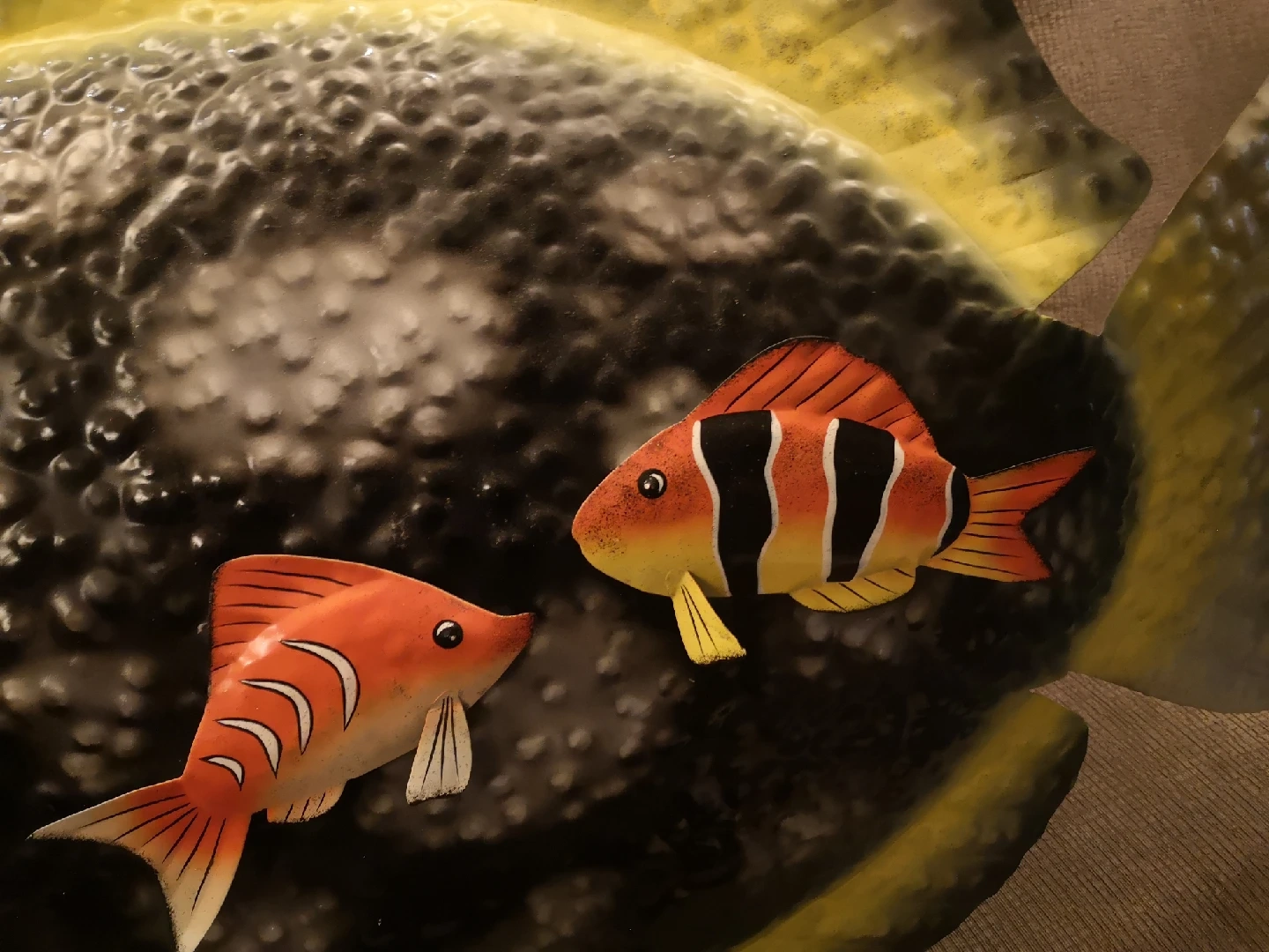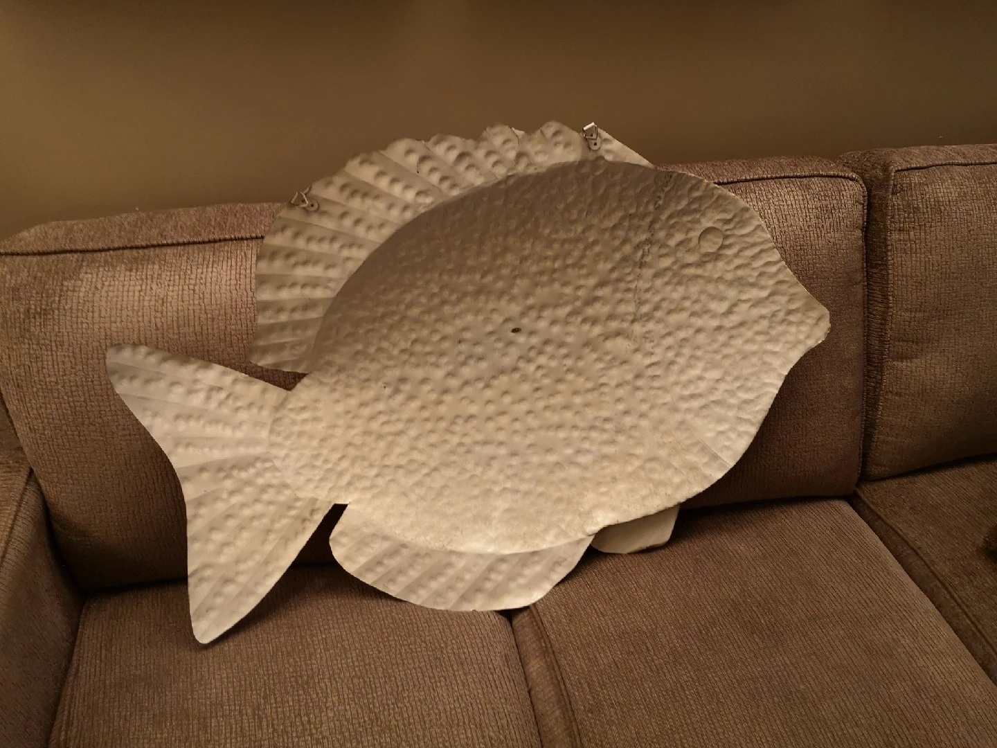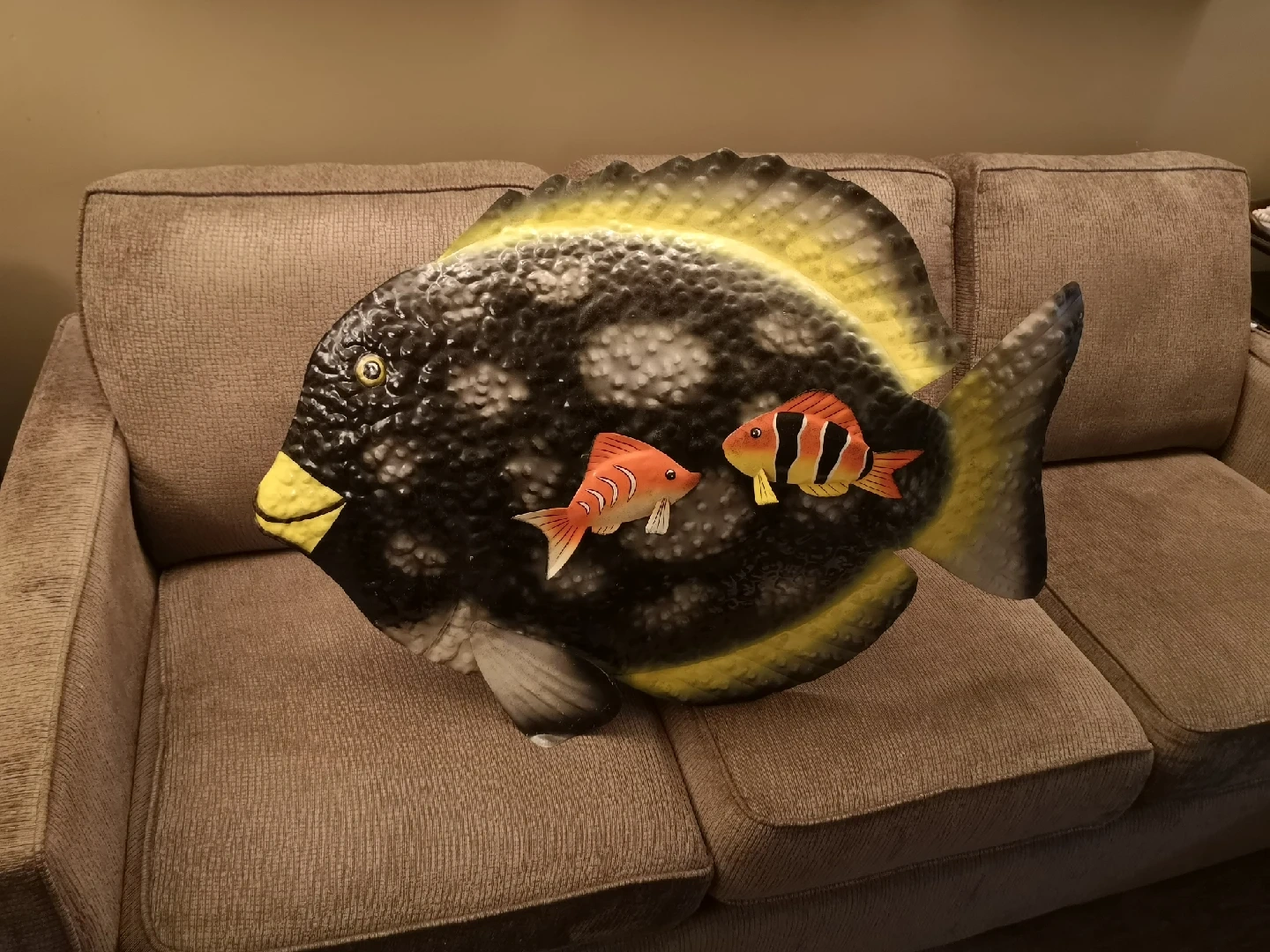 Stamped 3D metal fish wall art. - Large fish is a Yellowfin Tang. - Not 100% sure what the 2 small fish are... I wanna say a Clownfish + flame angelfish. - All metal, hand painted + airbrushed - Secures via 2 metal loops Pickup in Ranchlands in NW Calgary.