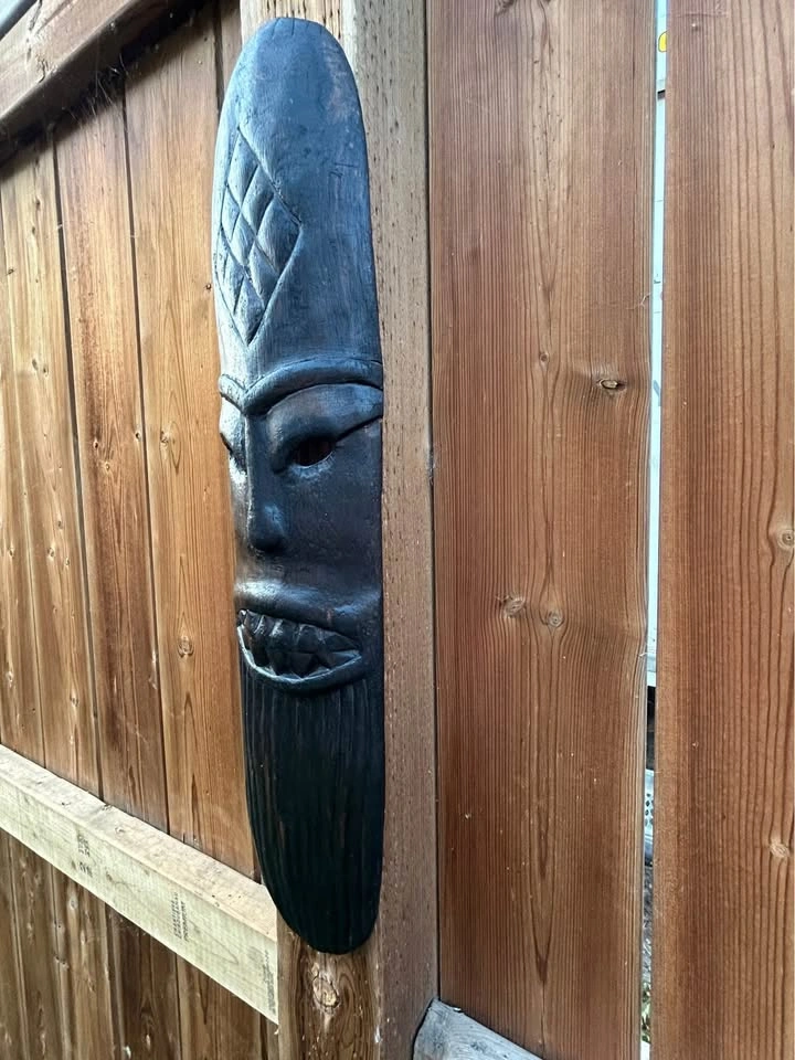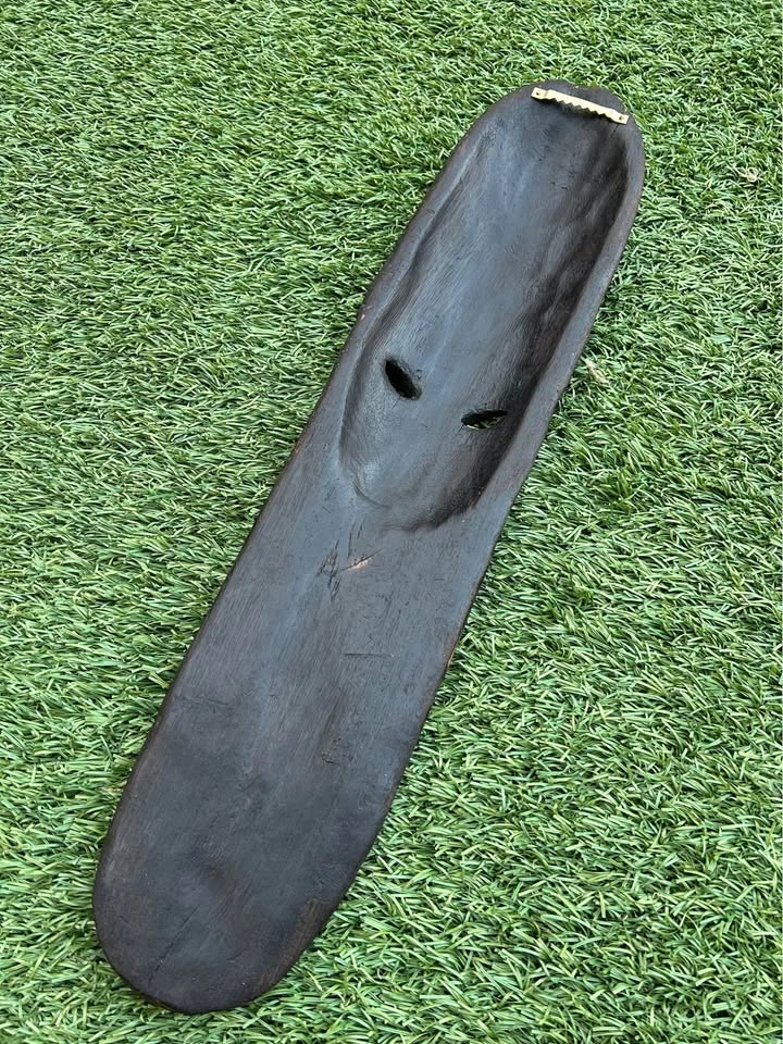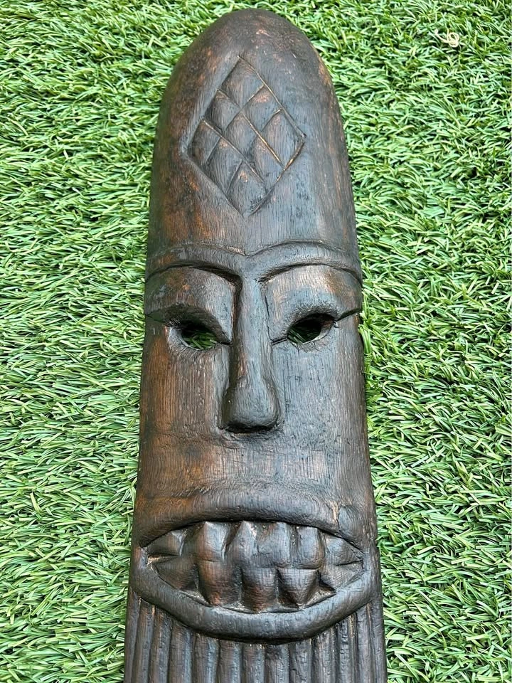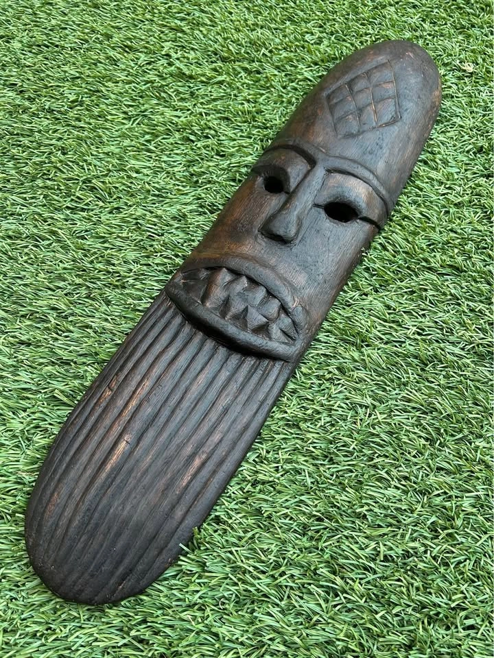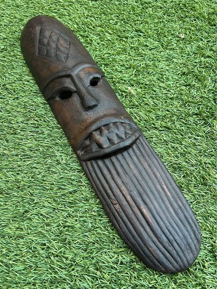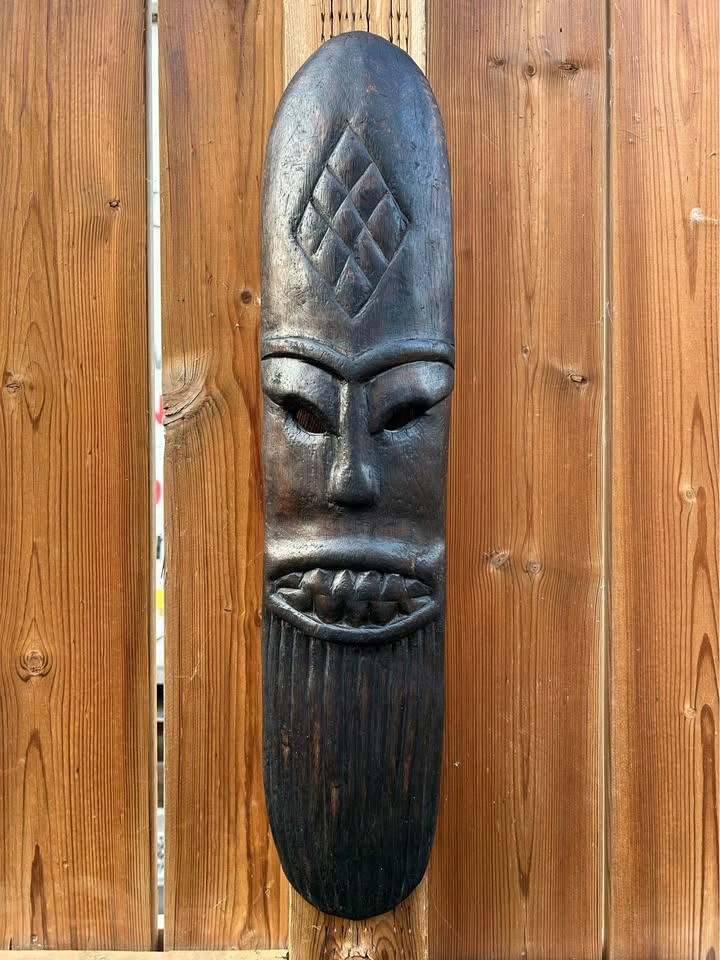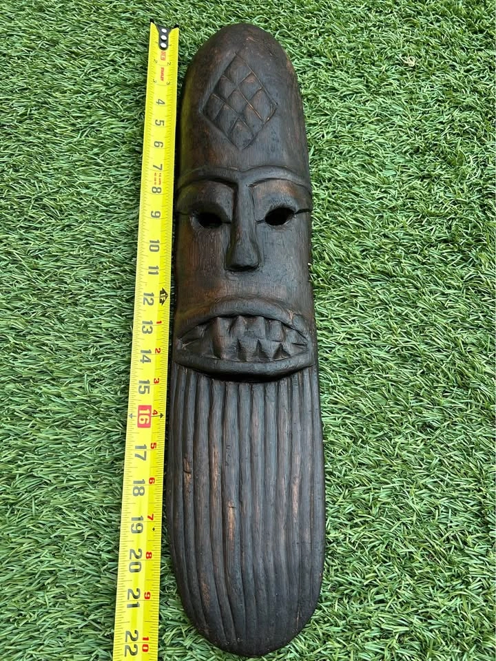 Unique vintage hand-carved wooden tribal mask featuring an elongated design with bold facial expression, carved teeth, and a diamond pattern on the forehead. Made from solid dark-stained wood, this piece is perfect as wall art décor or for collectors of cultural masks. • Material: Solid wood, hand-carved • Design: Elongated tribal face with carved teeth and forehead motif • Size: Approx. 22” tall (see photos for reference) • Condition: Good vintage condition with natural wear, adds to its authentic character A statement piece that adds character to any room, gallery wall, or collection of world art. • Pick up: Seton area, Calgary. • Payment: e-transfers and cash. • See also my other lots. Open to your questions and suggestions. If necessary, I provide additional photos. • These are not new things, so please look carefully at the photos and videos. Sizes are submitted on request and also using a tape measure in the photo.