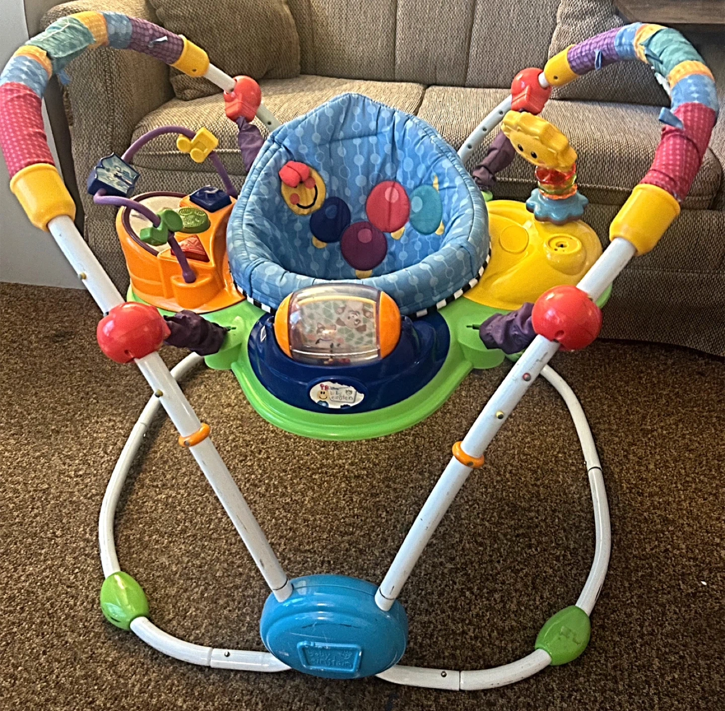 This Baby Einstein Bright Starts Bounce Baby activity jumper is in great condition! It's ready for a new little one to enjoy. The jumper features a variety of colourful toys and activities to keep your baby entertained and help develop their motor skills. It is recommended for babies who can hold their head up unassisted. It's a fun and engaging way for your baby to bounce and play!