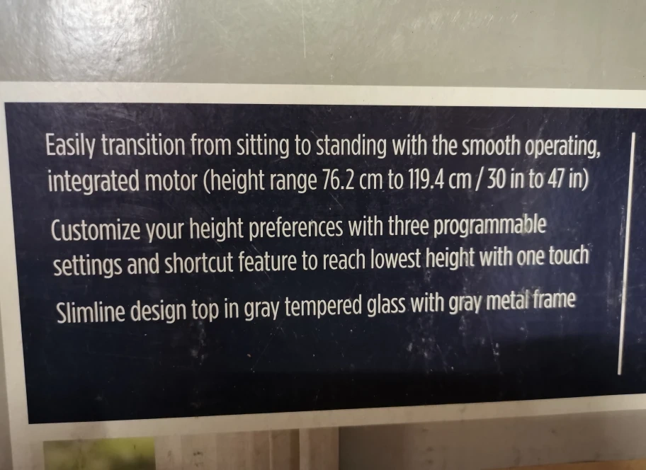 Easily transition from sitting to standing with the smooth operating, integrated motor (height range 76.2 cm to 119.4 cm/30 in to 47 in)
