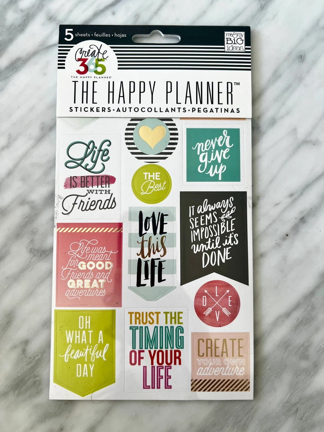 Selling a sheet of The Happy Planner stickers. These stickers are great for adding some fun and flair to your planner, scrapbook, or other craft projects! There are 5 sheets included, perfect for adding decorative touches to your daily life