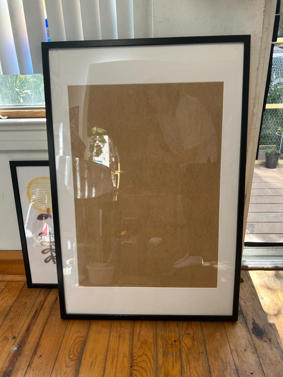 921Selling a picture frame with a black border. It's in great condition and ready to display your favourite memories! It’s 25 x 37” total and 19 x 27” not including the matting. It’s plastic, not glass.