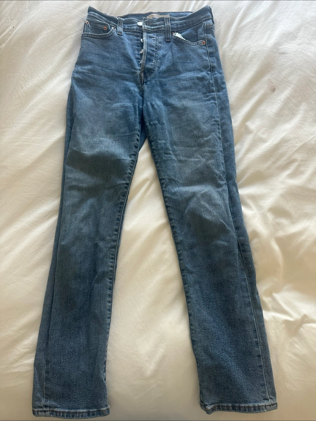 Selling a pair of Levi's Wedge Straight High Rise jeans in size 26. They're in great condition and have a classic, flattering fit! Perfect for everyday wear.