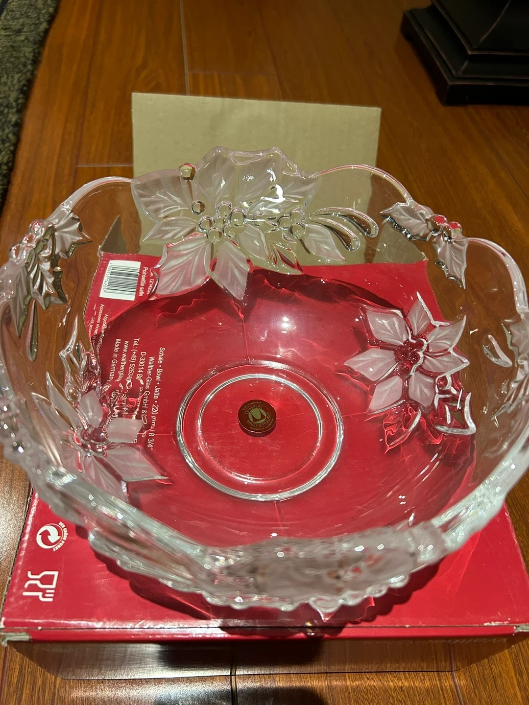 Selling a lovely Valther Glas Poinsettia bowl. It comes with the original box. The bowl features a beautiful poinsettia design. It's perfect for adding a touch of elegance to your home decor