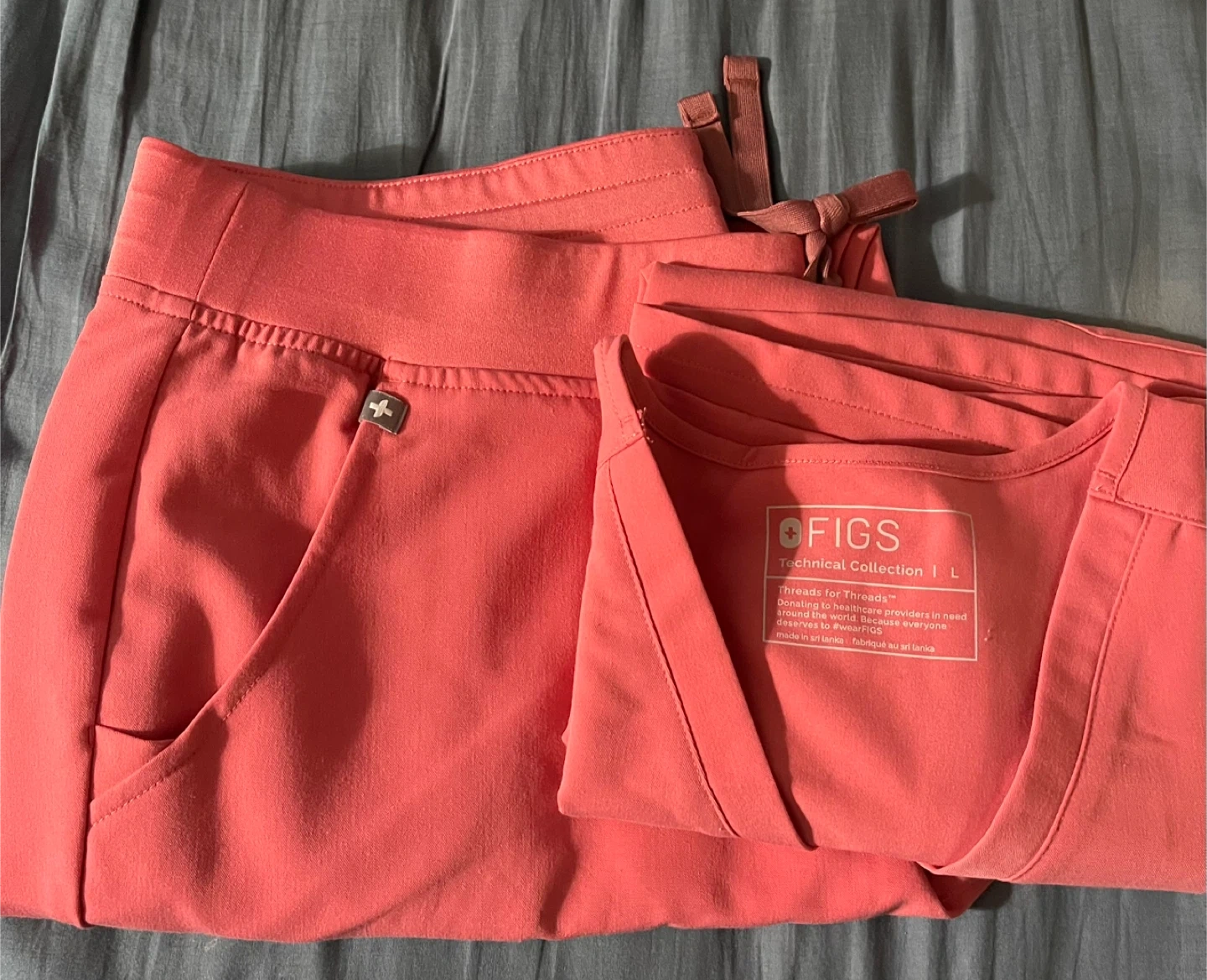 Selling a FIGS Technical Collection scrub set in size large. The set includes both the top and the pants. They're in great condition and ready for a new home! Never been used.