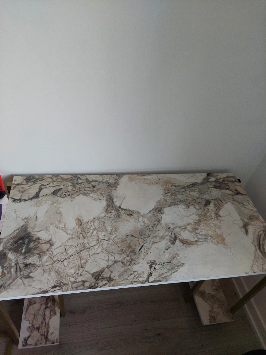 Selling a desk with a marble pattern top. There are some signs of wear on the surface, as shown in the pictures. The legs are a gold colour. It's a great desk for a home office or study space!