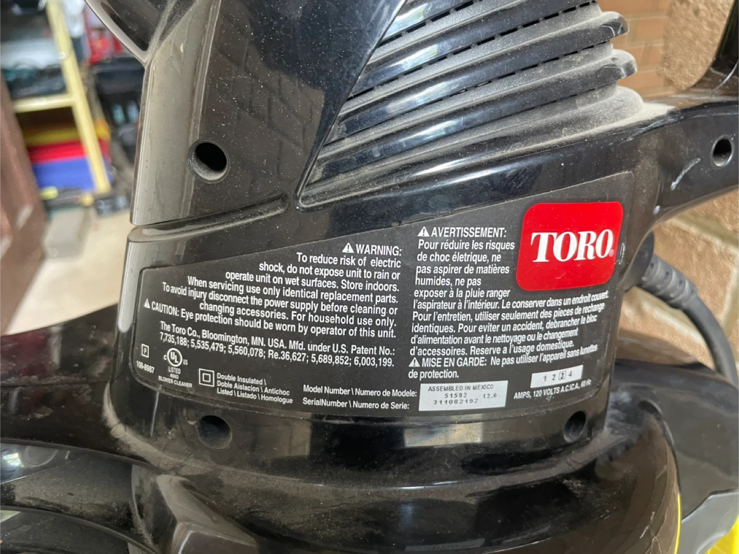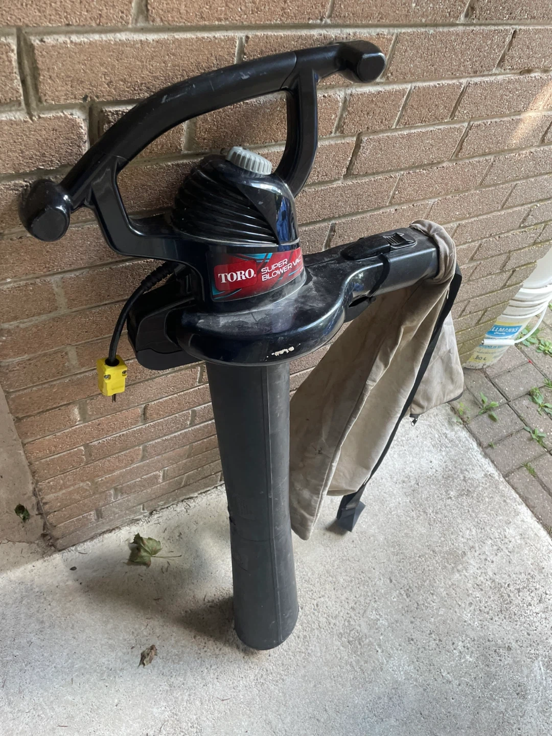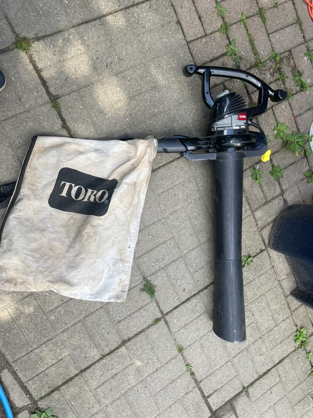 It’s Toro vaccum , blower parts are missing So it’s only purpose for leaf vaccum only It’s used & working condition Cash and pickup Location- brimley and Lawrence Thank you
