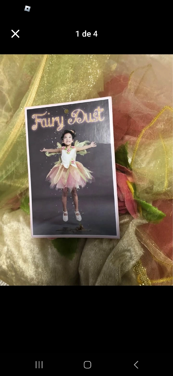 A cute Fairy Dust costume, perfect for dress-up or Halloween! It features a dress with tulle and rose accents. It's in great condition and ready for a new home
