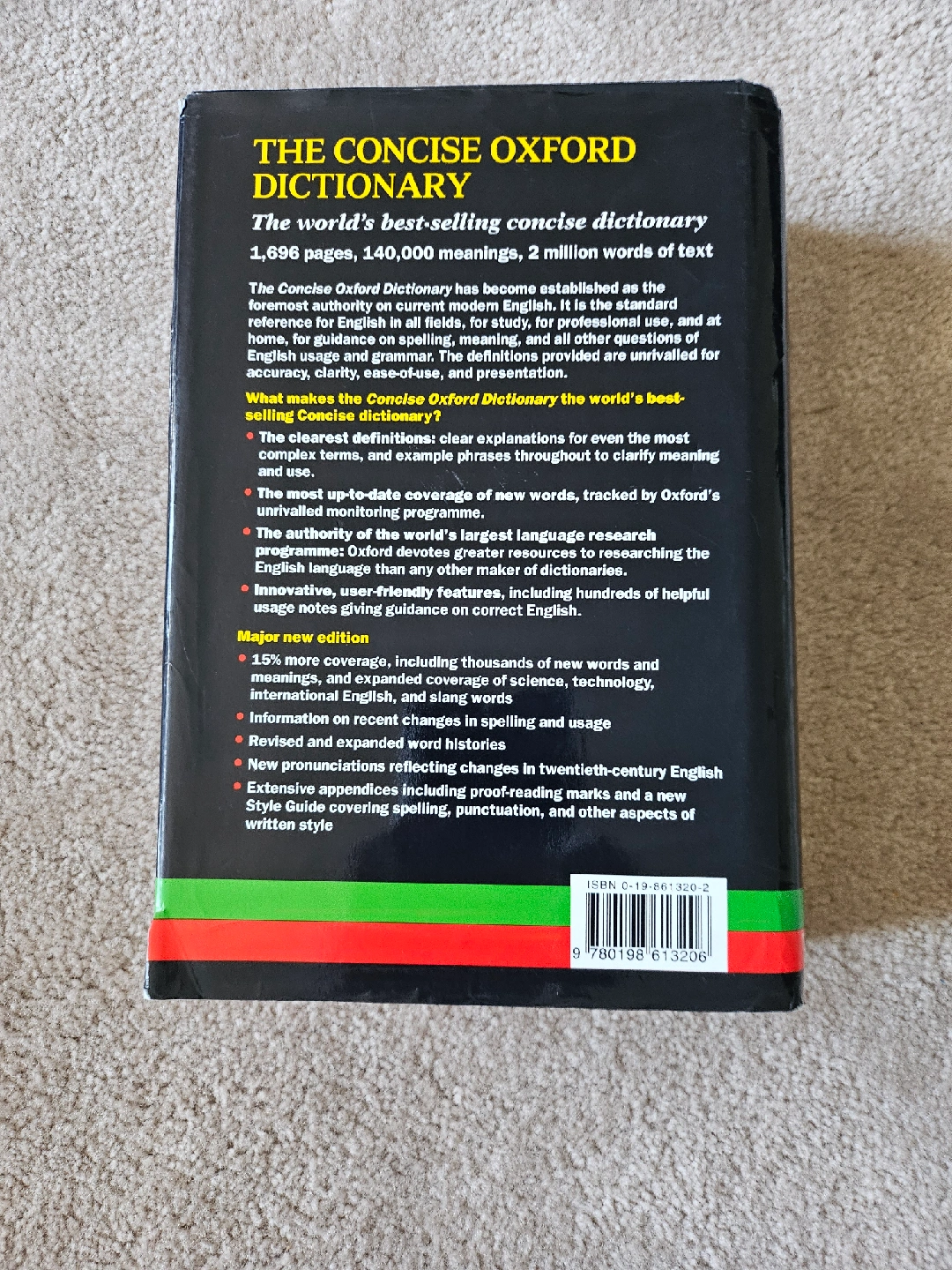 Selling a Concise Oxford Dictionary, Ninth Edition. This is the thumb index edition, great for quick referencing! It's a major new edition and the foremost authority on current English