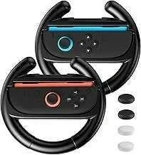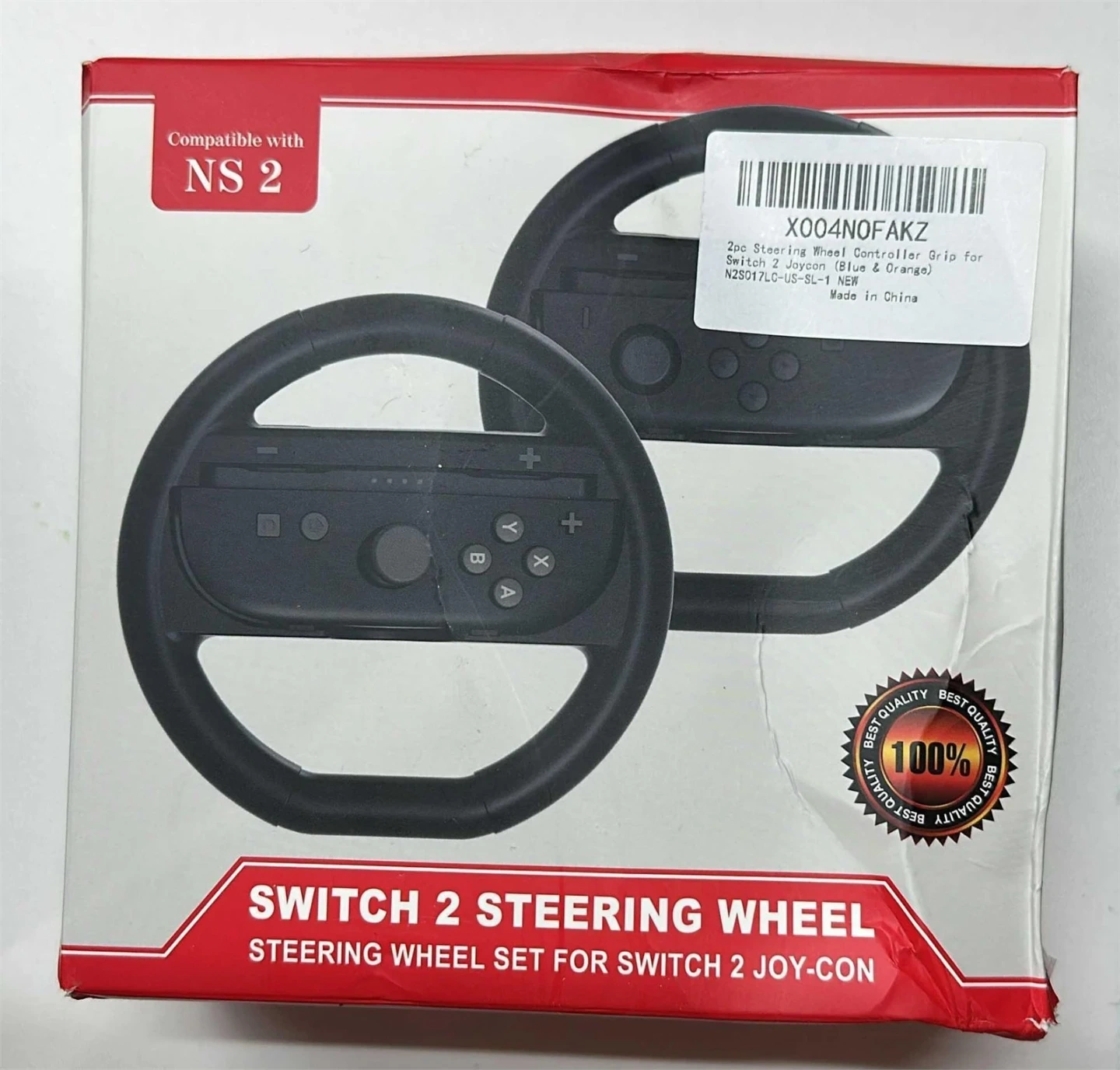 This is a steering wheel set for Nintendo Switch 2 Joy-Con controllers. It's compatible with NS 2 and comes in black.