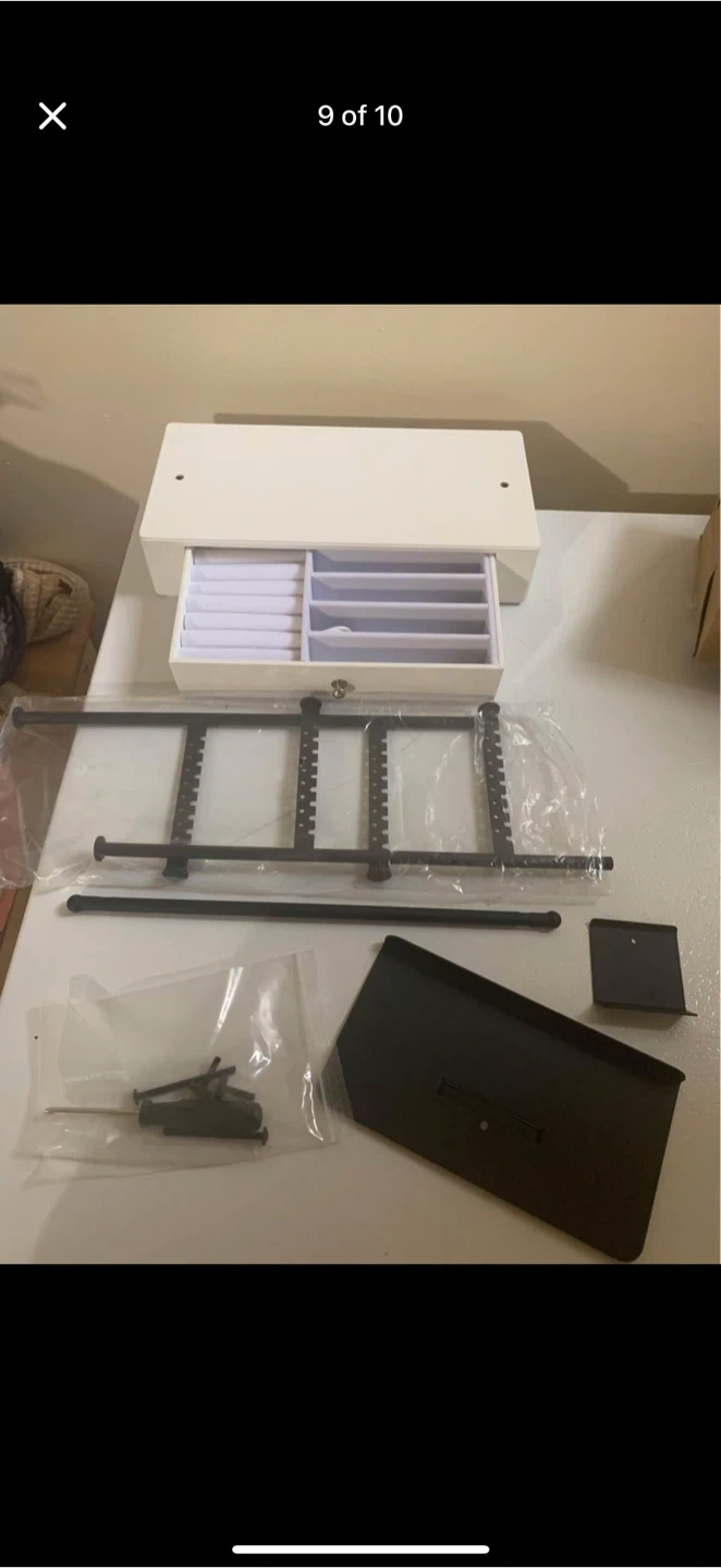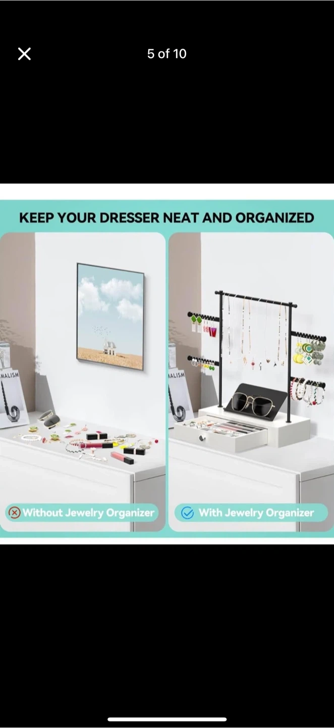 Keep your dresser neat and organized with this jewelry organizer! It features a drawer and hanging rack to store all your favourite pieces. It's perfect for necklaces, bracelets, earrings, and more