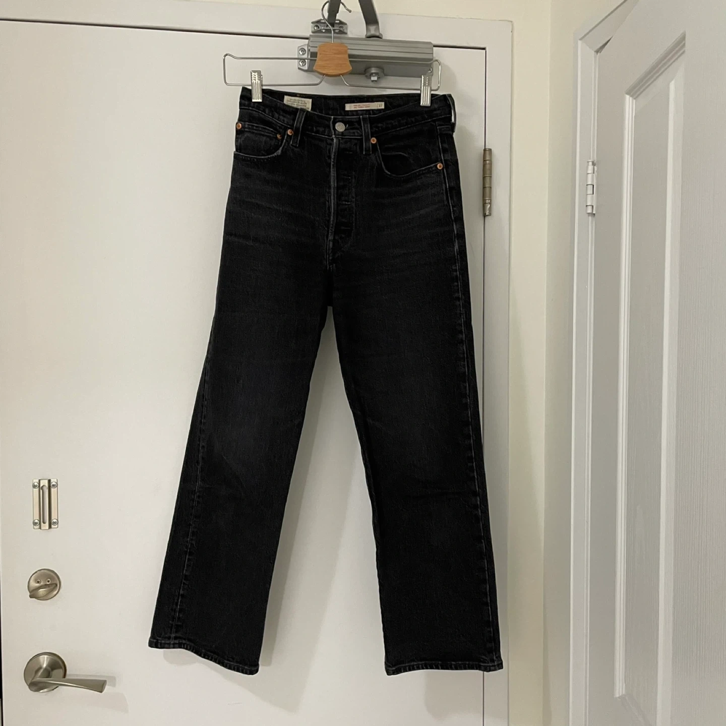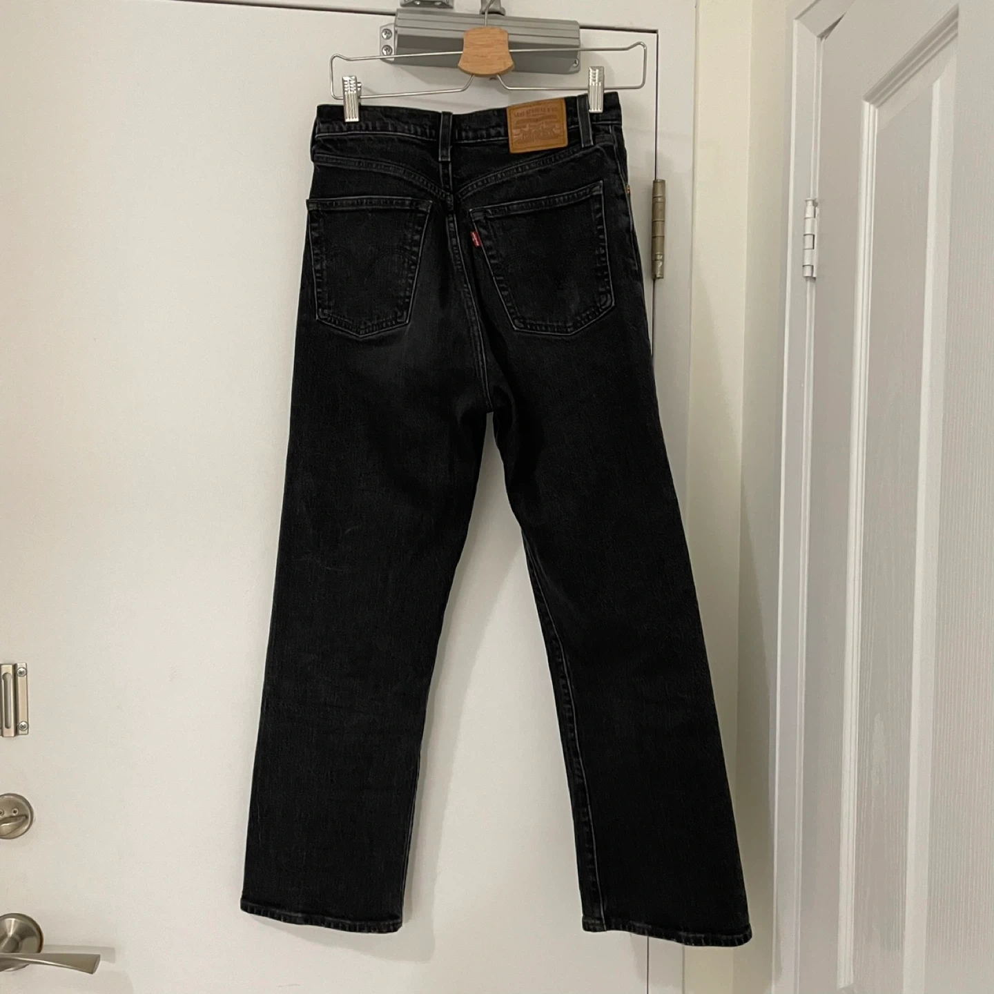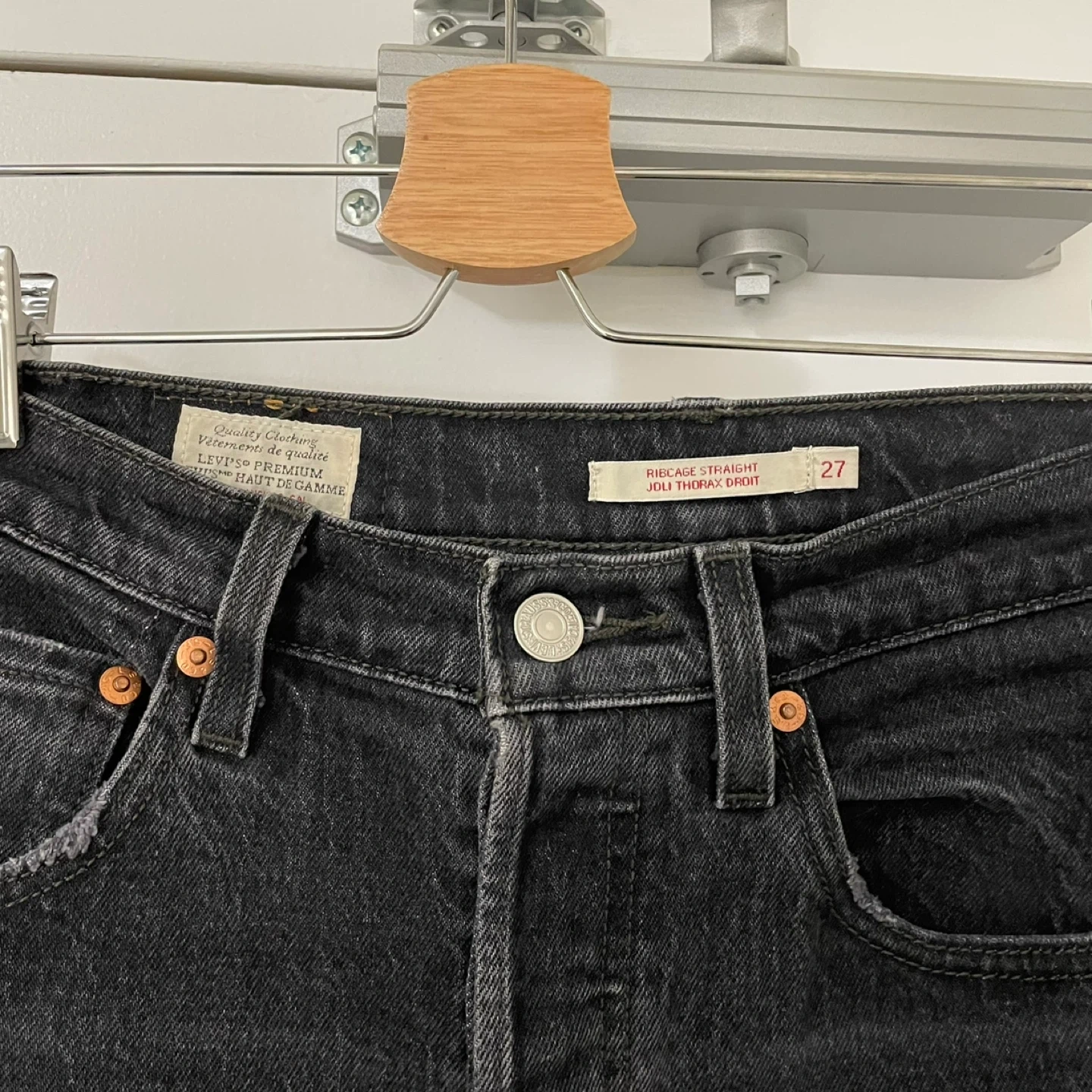 Selling a pair of Levi's Ribcage Straight jeans in size 27. The colour is Feeling Cagey, a dark washed black. They're in great condition!