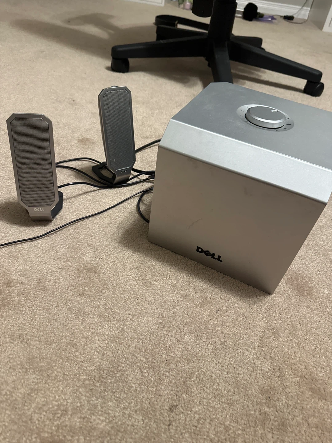 Selling a Dell 2.1 speaker system. It comes with two satellite speakers and a subwoofer. Perfect for your computer or gaming setup!