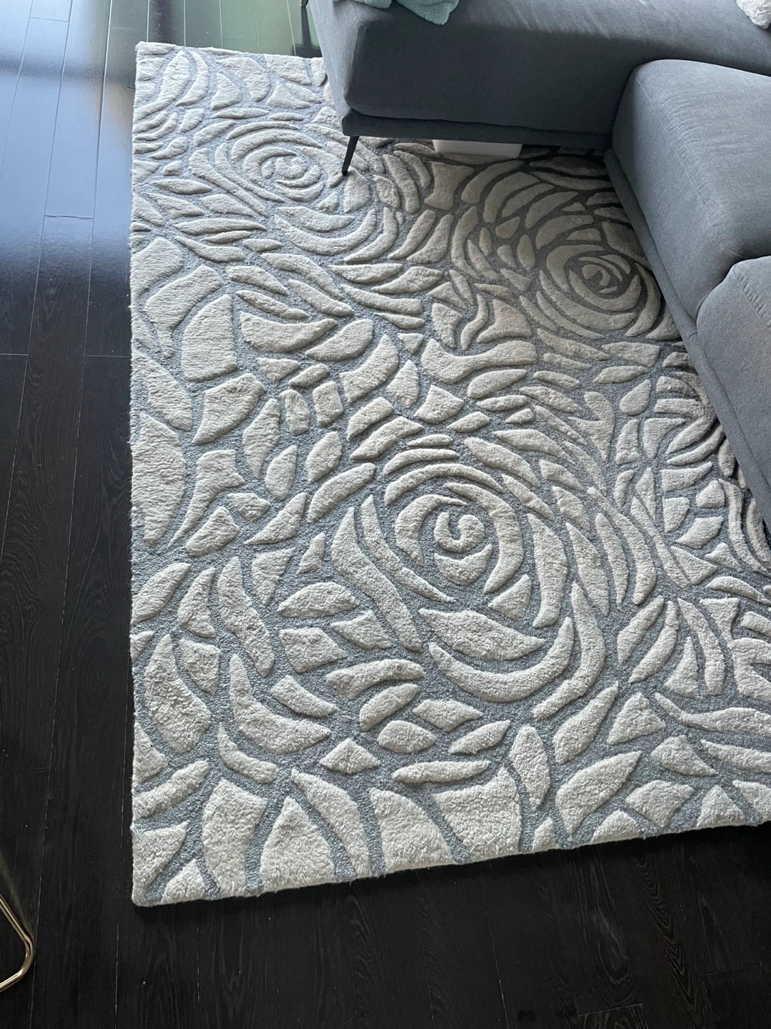 A lovely area rug featuring a beautiful floral pattern. It's good condition and would add a touch of elegance to any room!
