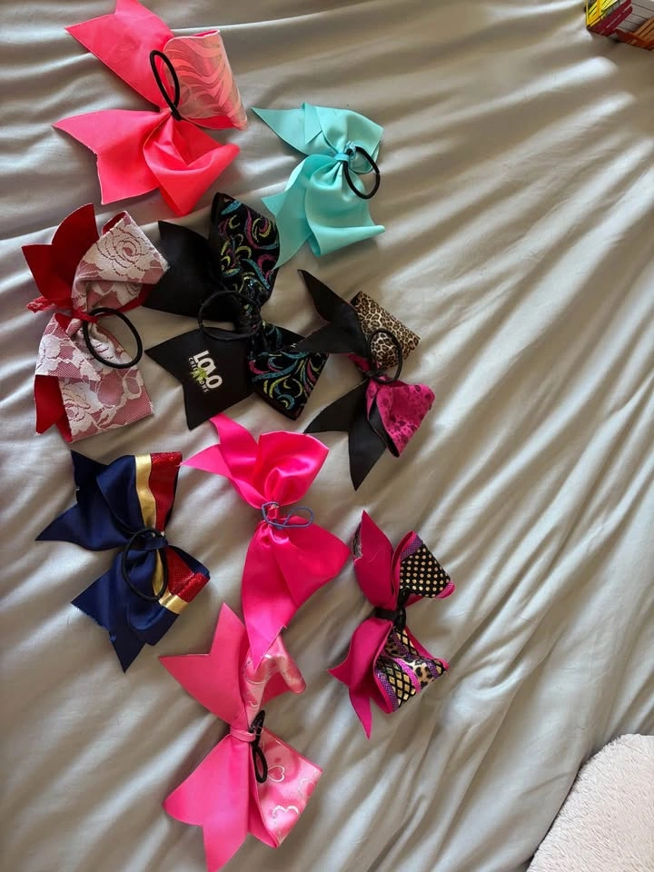 Fancy Cheer Bows for Practice! $3 each - Turquoise - Cheetah + Pink - Pink, Purple and Cheetah - I like big bows - Black and Sparkles - Hot Pink - Hearts - Poison - Red, Gold and Blue Pickup in Burlington