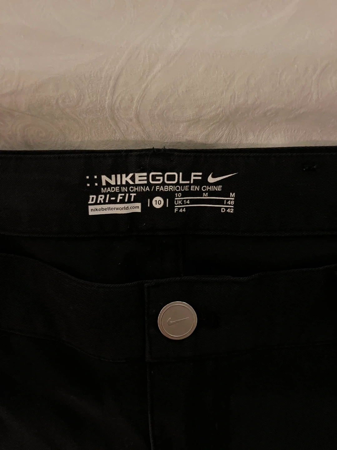 Selling a pair of women’s Nike Golf Dri-FIT pants in size 10. They're black and in excellent condition! Perfect for a day on the green or just casual wear. These pants are made with Dri-FIT technology to keep you comfortable and dry.