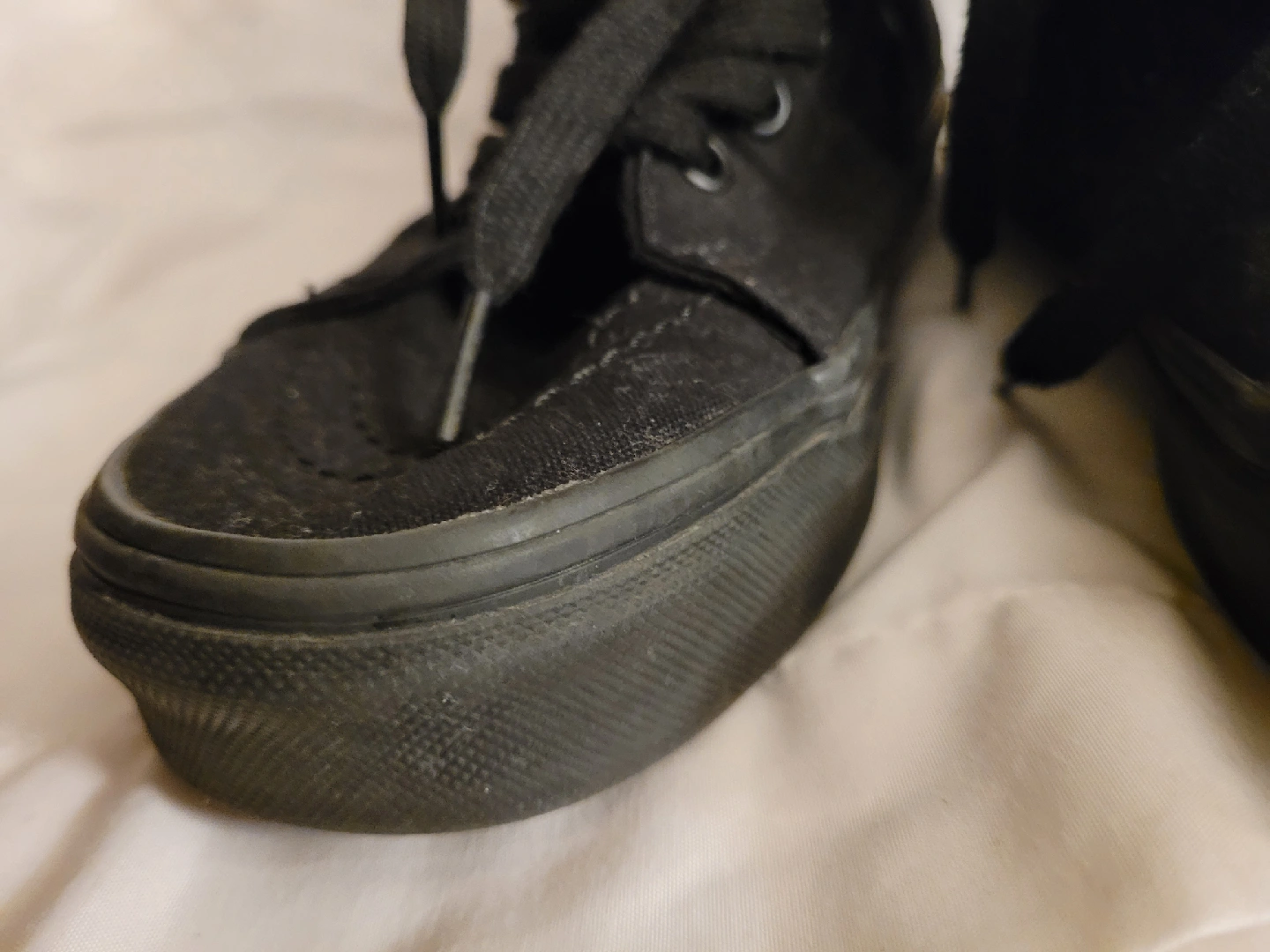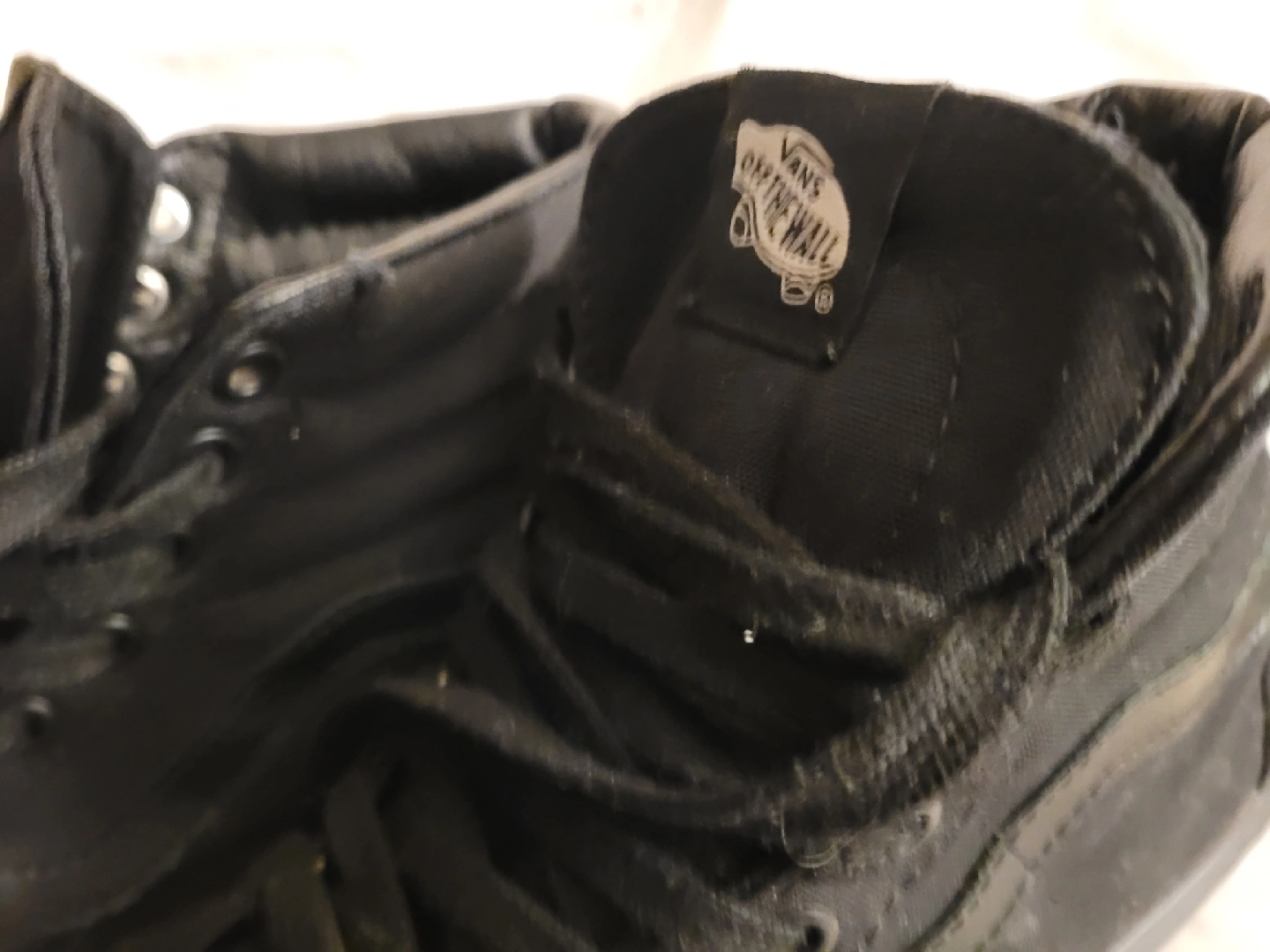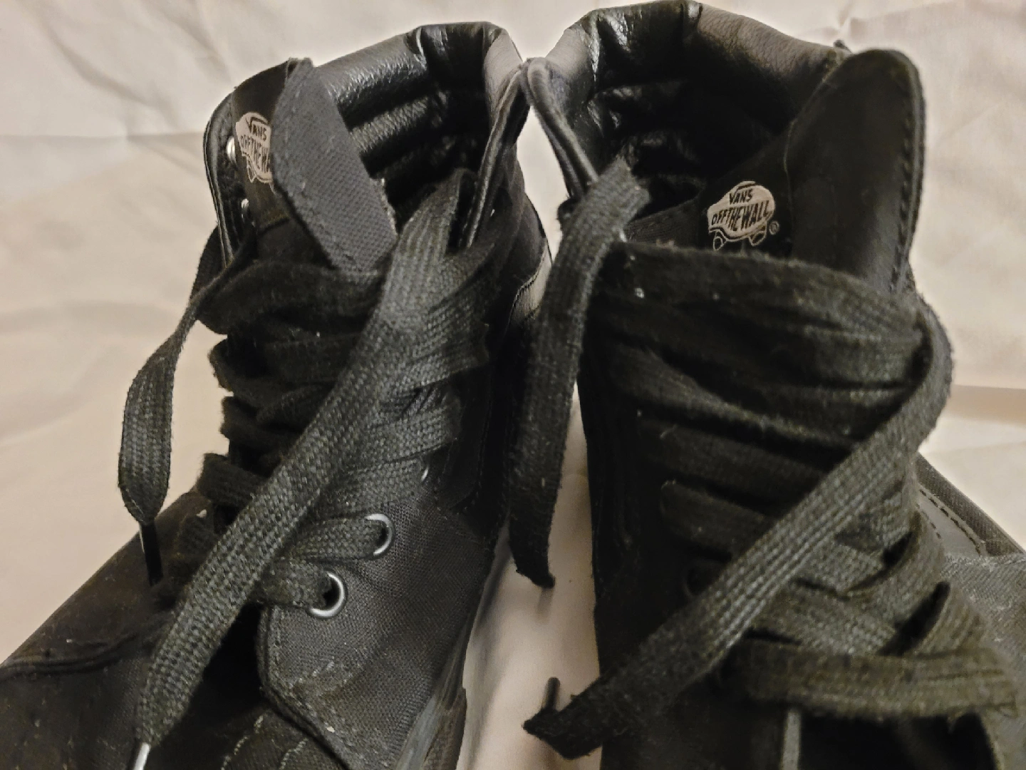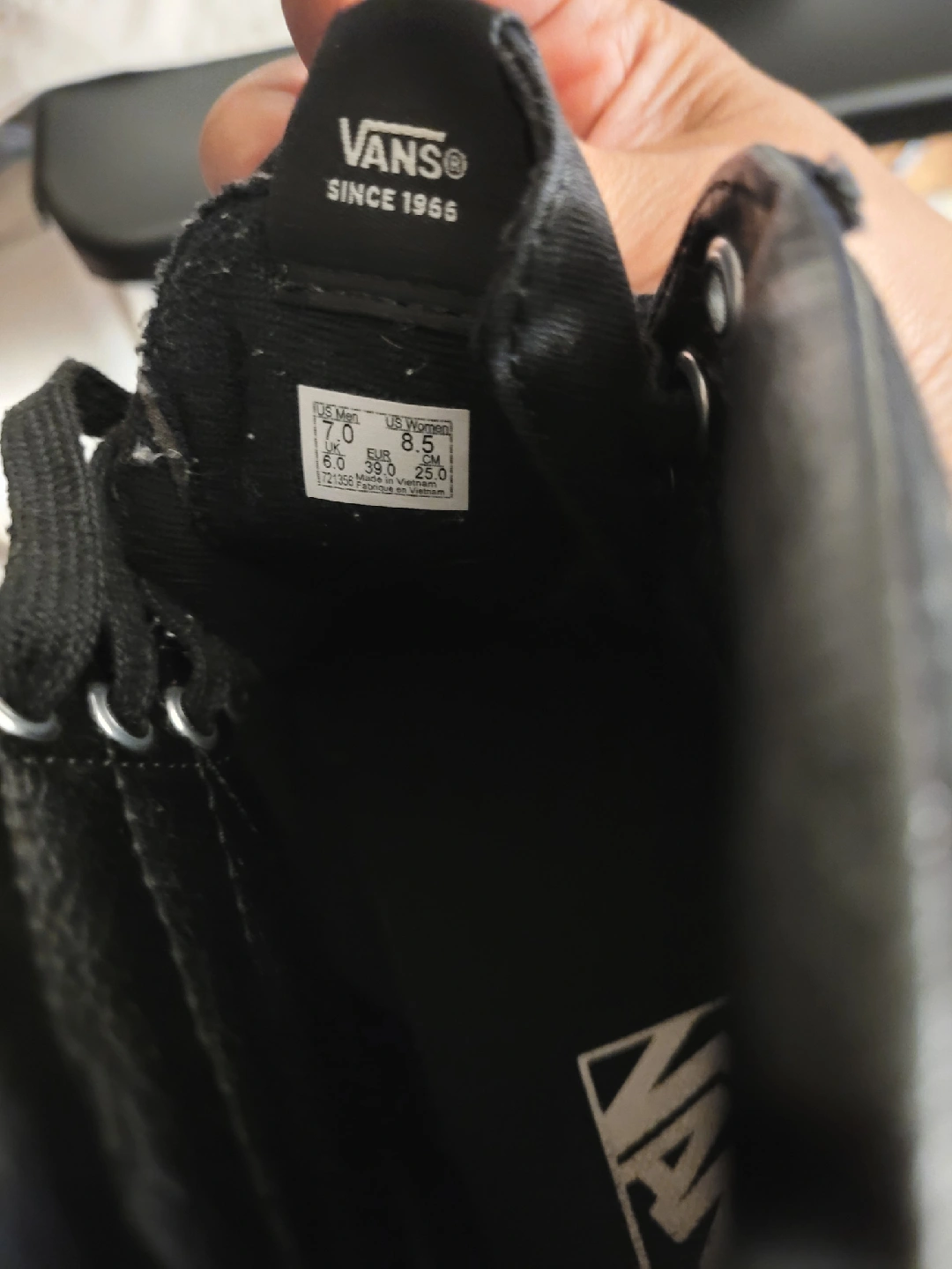 Selling a pair of Vans Sk8-Hi in all black! These high-tops are in used condition but still have plenty of life left. Perfect for skating or just everyday wear. Gently worn.