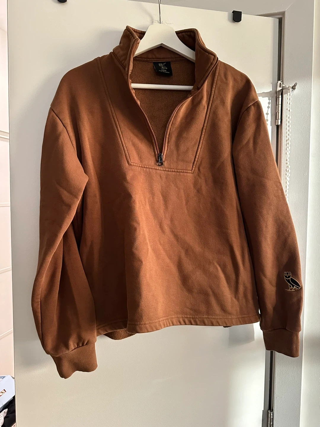 Selling a gently used OVO (October's Very Own) 1/4 zip pullover. It's a size large and comes in a nice brown colour. Made in Canada!