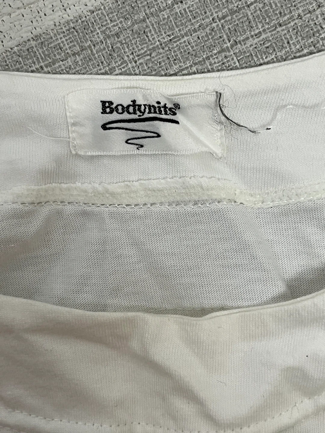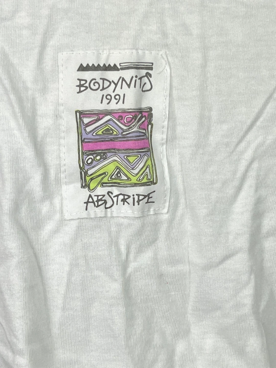 31Selling a Bodynits 1991 Abstripe white t-shirt! It's a unique piece with a fun graphic design. Great for adding a vintage touch to your wardrobe. Check out the photos for details! Pick up at Brow of the Hill near 10th and Royal, New Westminster. Check out my other listings!