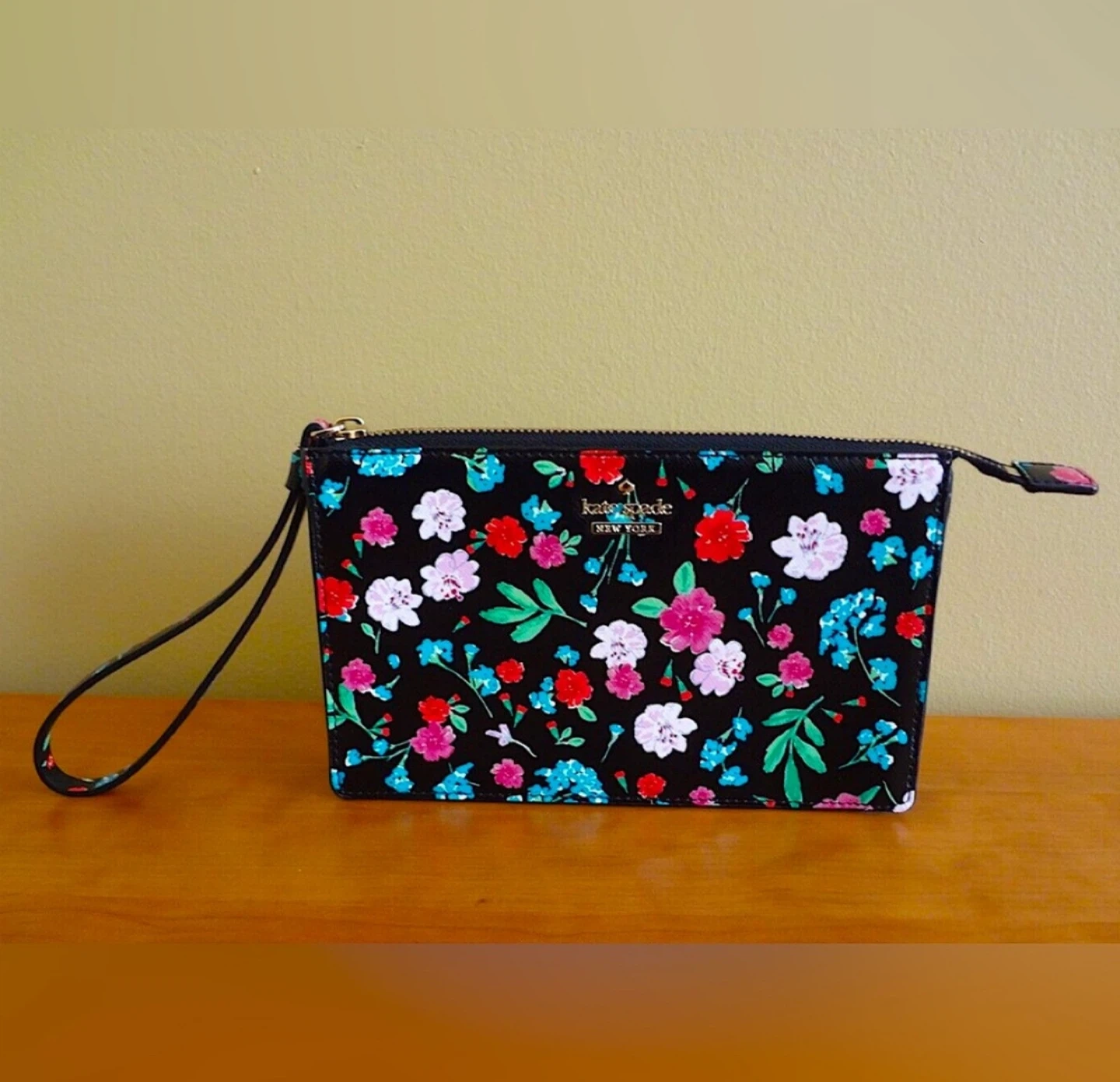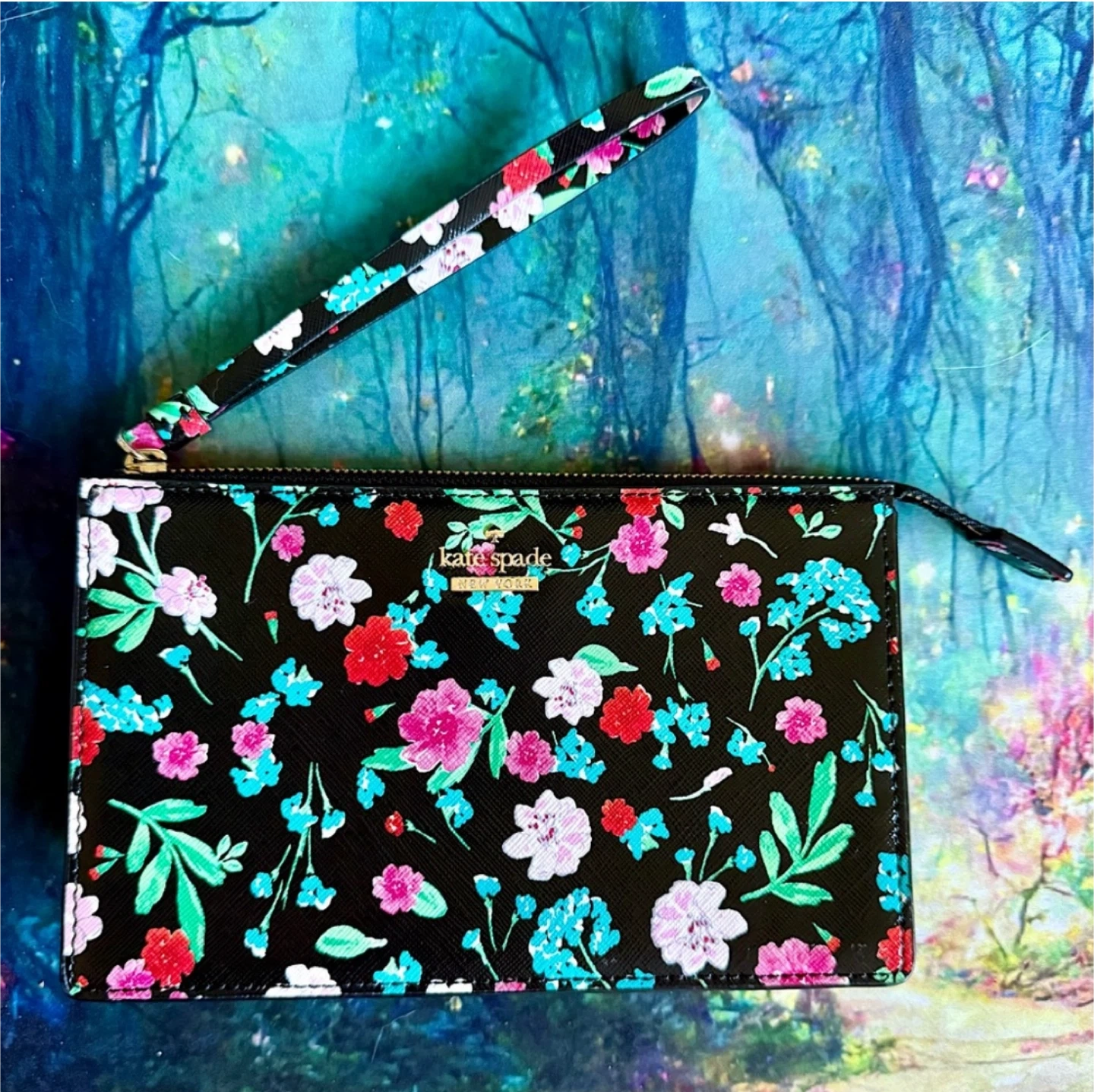NWOT kate spade Black Multicolored Floral Wristlet Pouch