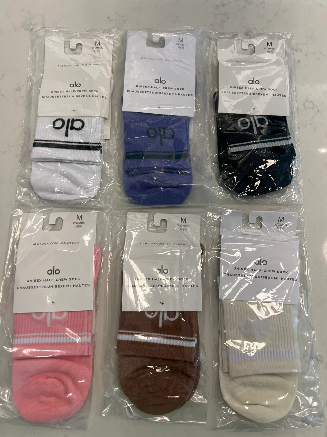 23(12 colors) I'm selling brand new Alo Yoga unisex half-crew socks! They come in a variety of colors. Perfect for everyday wear or workouts!