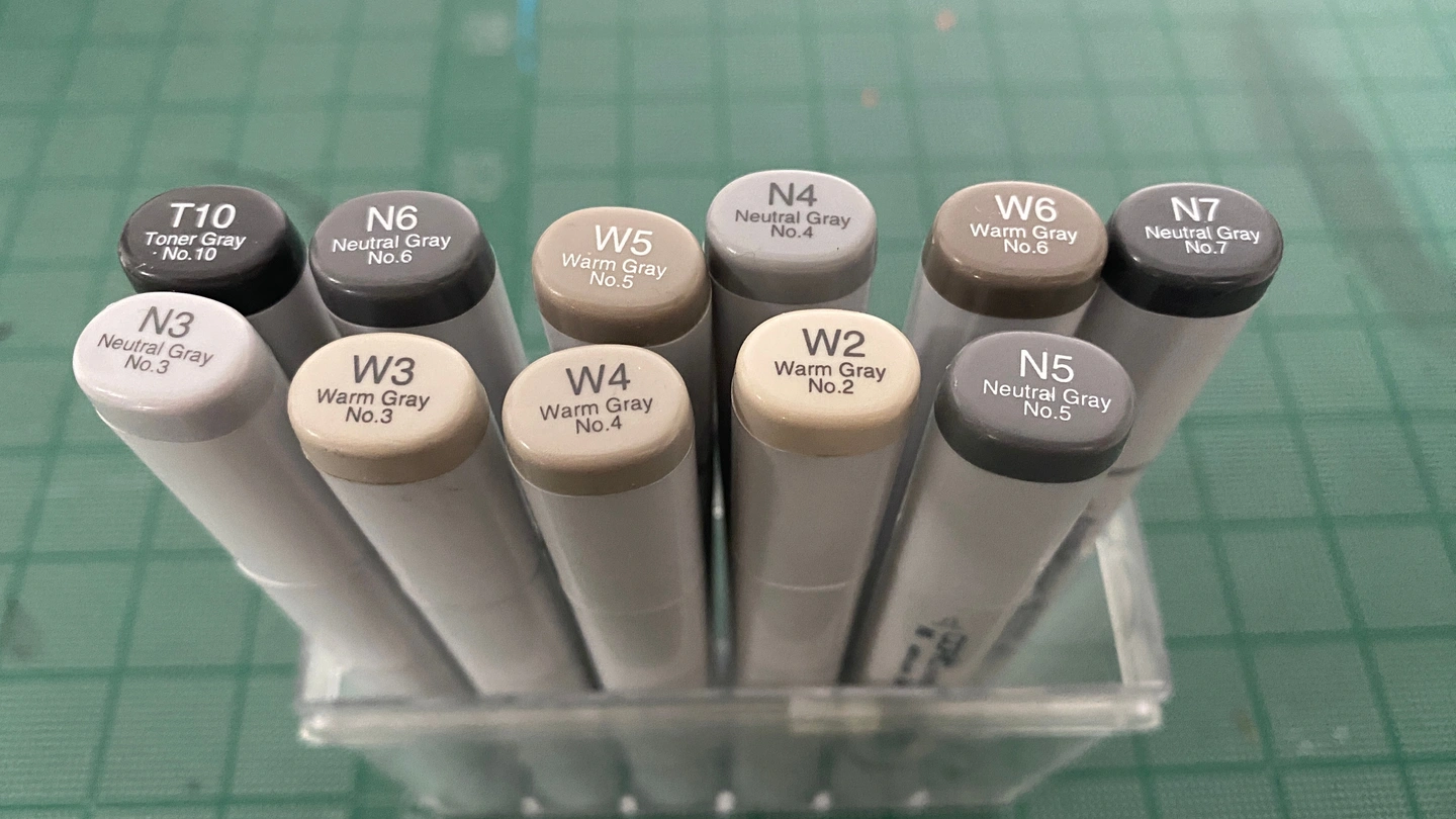 Grey set includes a mix of cool, warm and neutrals. These are professional quality markers that's why they are expensive.