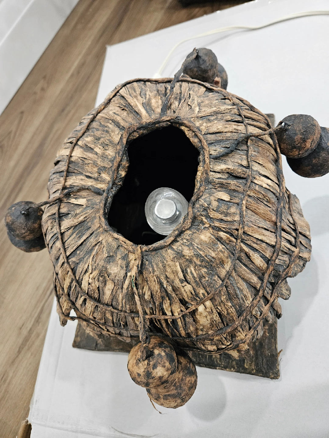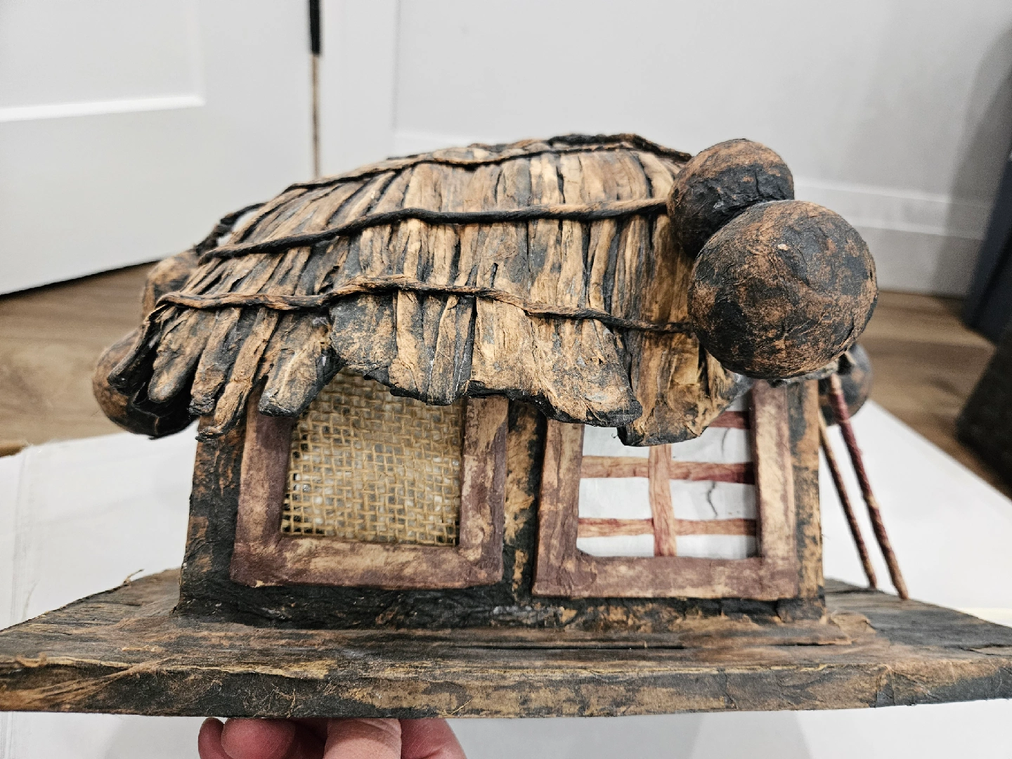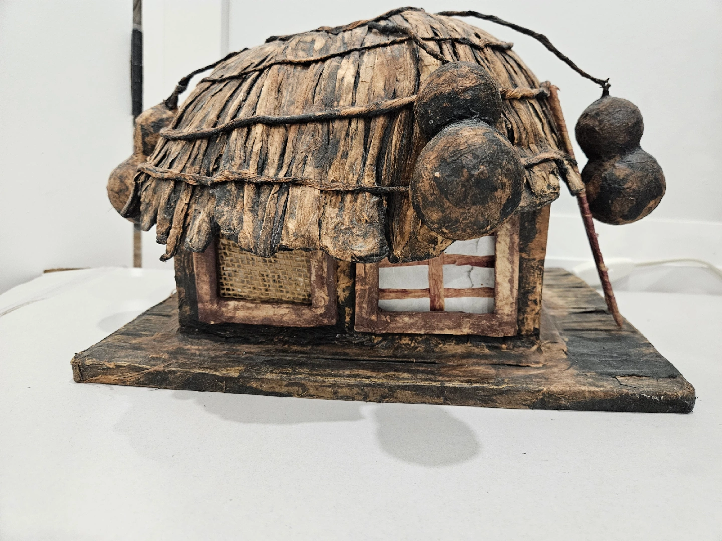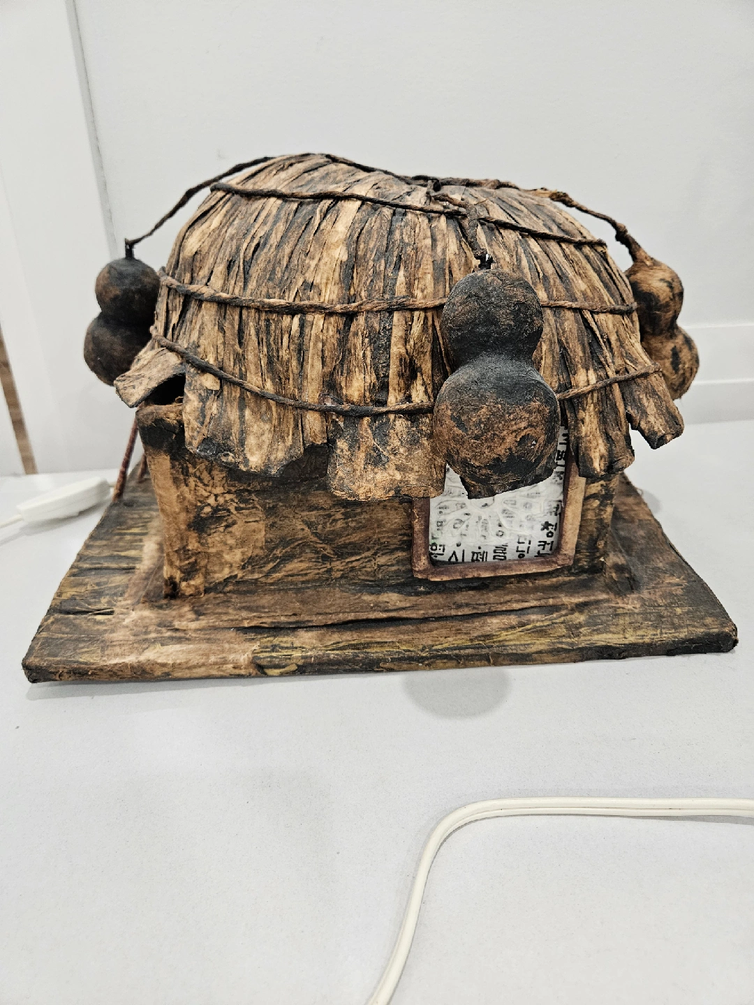 97This is a charming rustic lamp shaped like a thatched roof hut. It would be a great addition to any room! Korean traditional house /made with paper 13.5 x10 inches