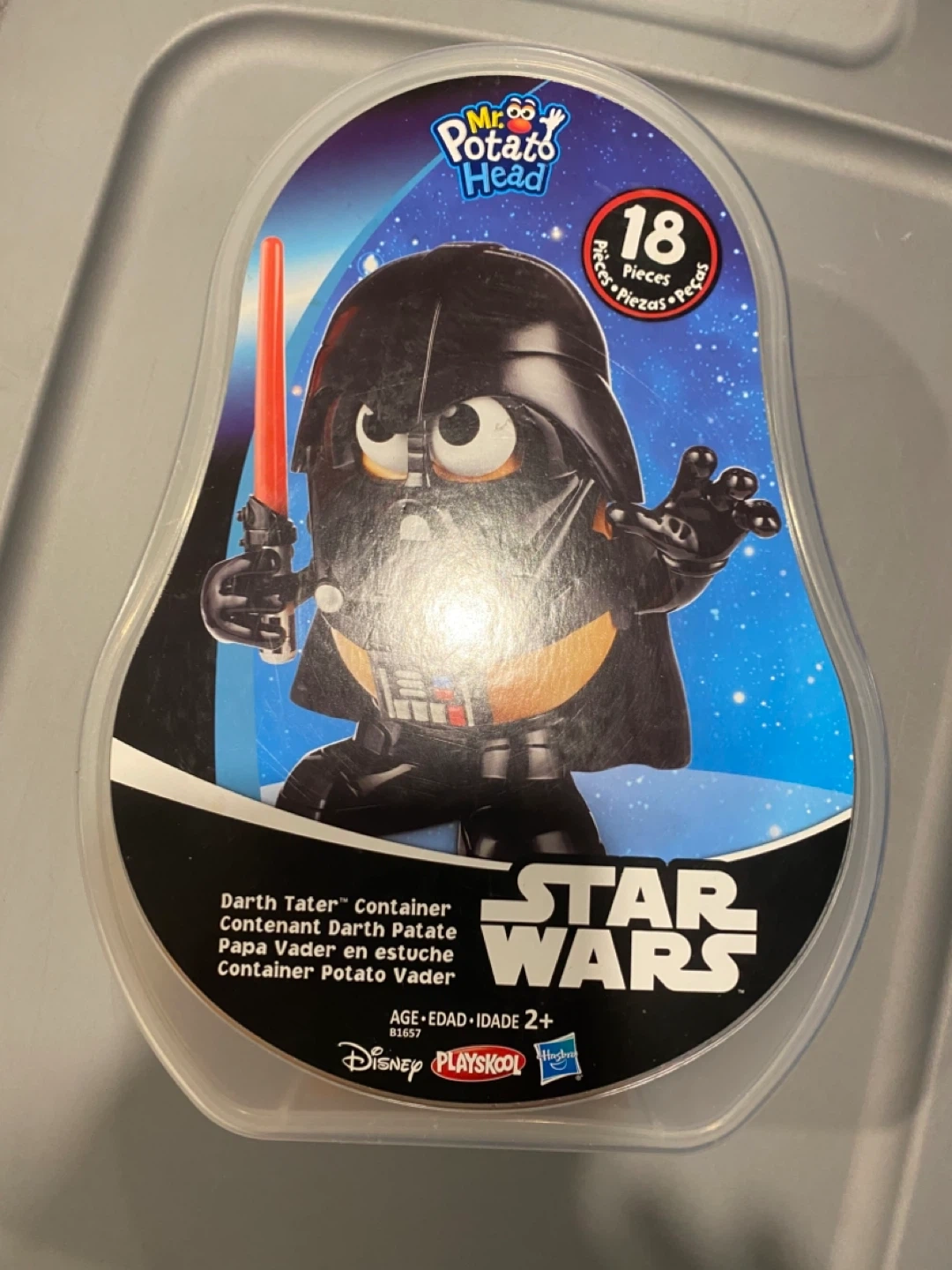 Mr. Potato Head Darth Tater container includes 18 pieces to create your own Star Wars potato figure! Recommended for ages 2+