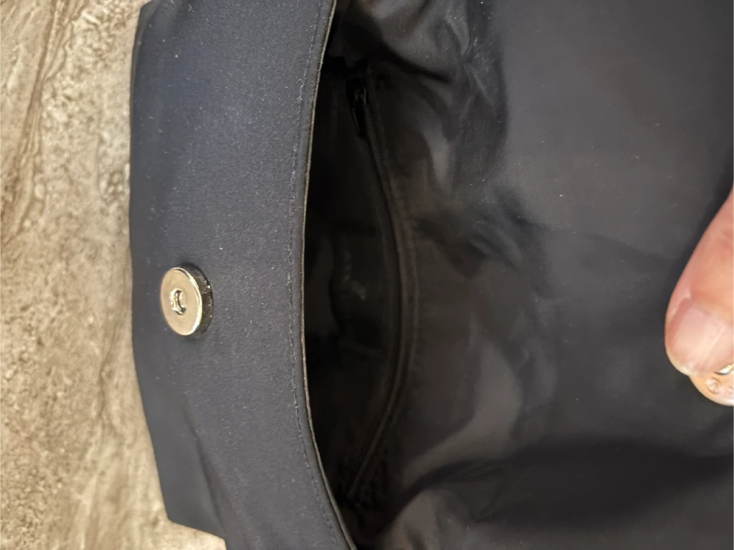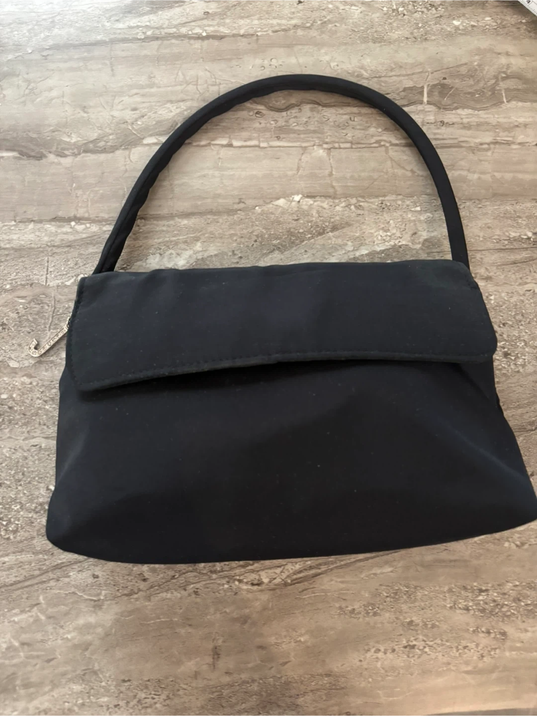 A cute little black handbag by Jeanne Lottie! It's in great condition and perfect for carrying your essentials. The material is soft and has a nice feel to it - super lightweight too!