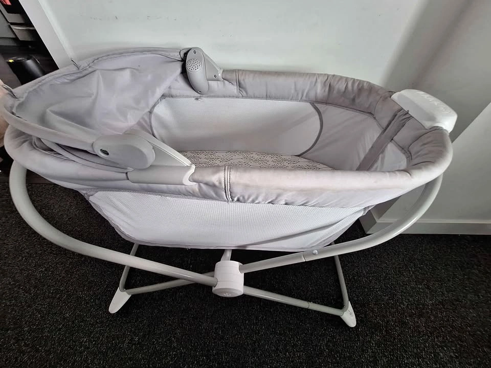Toys not included. Collapsible bassinet with shade. Travel friendly. Easy rocking feature for the baby. Pickup only. Near Dufferin and Lawrence W