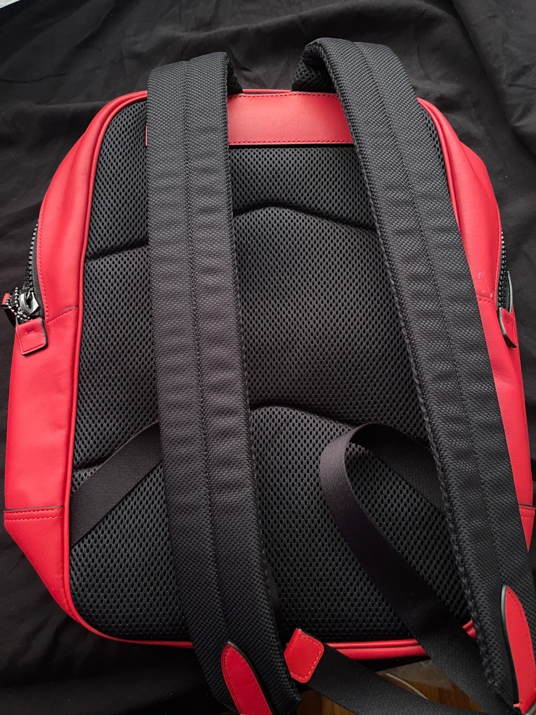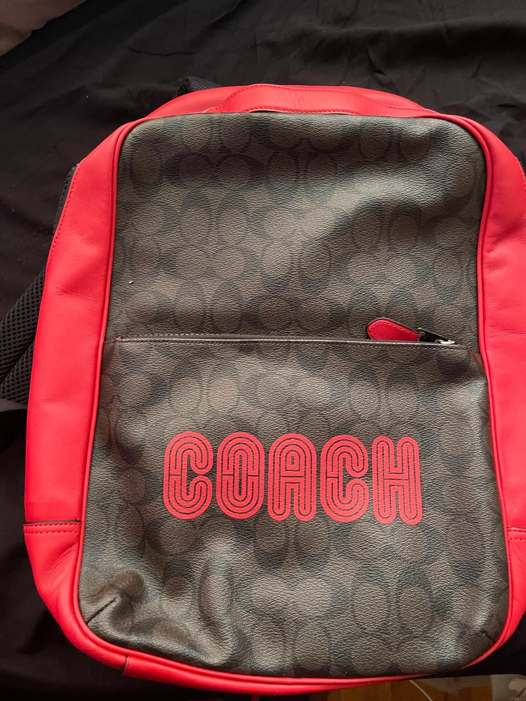 Selling a Brand New Coach backpack in a stylish brown and red colour combination! It features the Coach logo prominently on the front. The backpack has black straps and a red tag with the Coach logo, adding a touch of class to your everyday carry. 10/10 Condition Message for more details