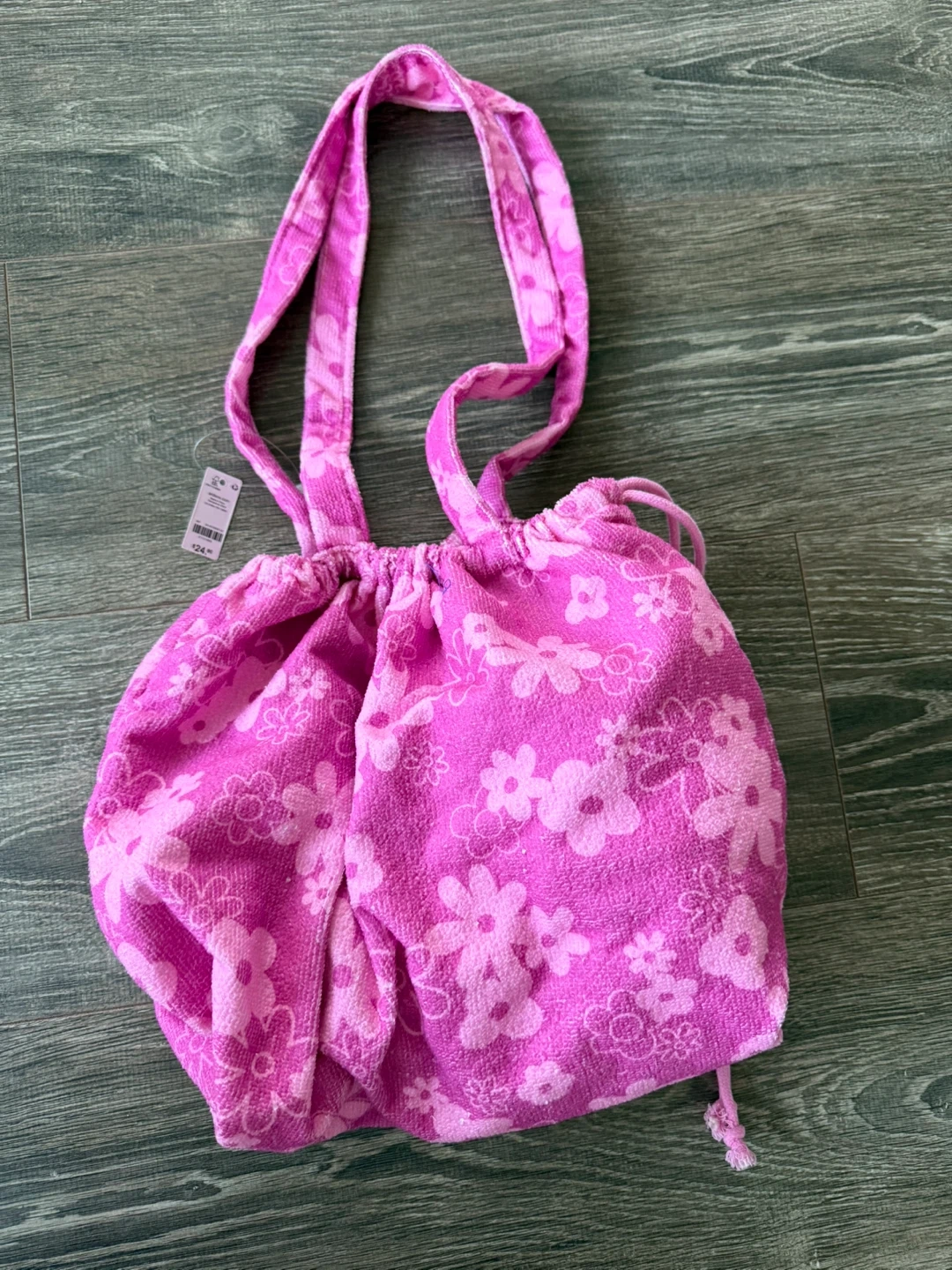 Super cute and in great condition, this pink floral beach towel tote bag is perfect for carrying your essentials to the beach or pool. It's lightweight and easy to carry, making it a great summer accessory
