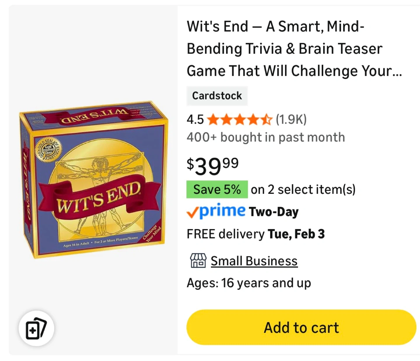 Wit's End - Trivia Board Game