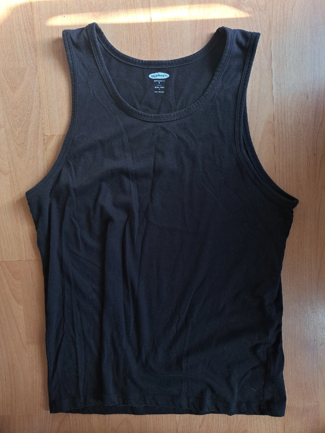 A basic black tank top from Old Navy in size small. It's in good condition and perfect for layering or wearing on its own during warmer weather. A versatile piece for any wardrobe!