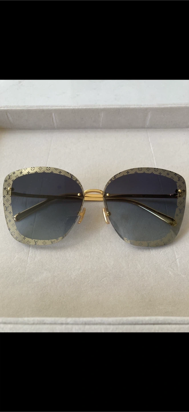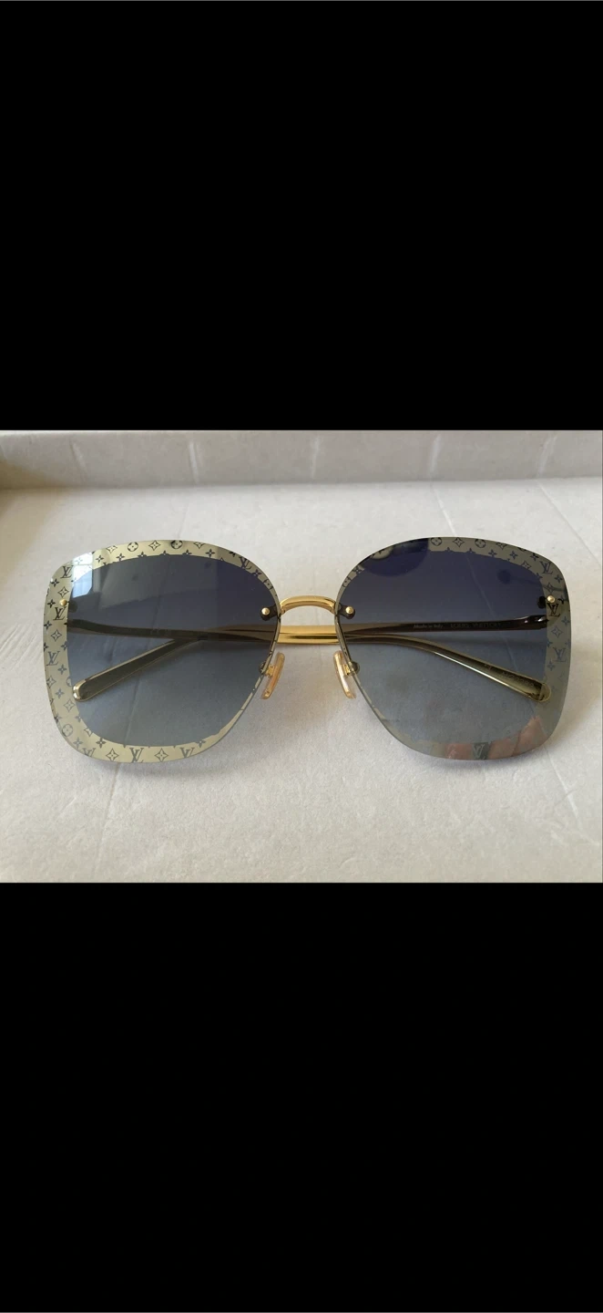 Louis Vuitton Halo Square Sunglasses in Blue Lense Listing these Stylish Sunglass from Louis Vuitton. They are reg. Priced around $800 Comes with NO case NO box. Sold as it is. Condition: Great except from really minor scuff marks on the side arm but not noticeable. Please see last photo. New for Spring-Summer 2023, the LV Halo Square Sunglasses combine a contemporary shape with an iconic Louis Vuitton look. The House’s historic Monogram pattern is featured in fine engraving on the temples and a subtle flash around the lenses, accentuated by the ultra-light rimless design. A Monogram Flower detail on the end tips adds a final signature flourish. * Gold-colour metal frame * Metallic Blue gradient lenses * Subtle Monogram flash around the lenses * Monogram Flowers and LV Initials engraved on the temples * Monogram Flower detail on the end tips * Transmittance:14% * UV Protection:100% Made in Italy Pickup Langley (2 mins from Langley Events Centre) OR Richmond Sundays or Mondays Thank you for looking!